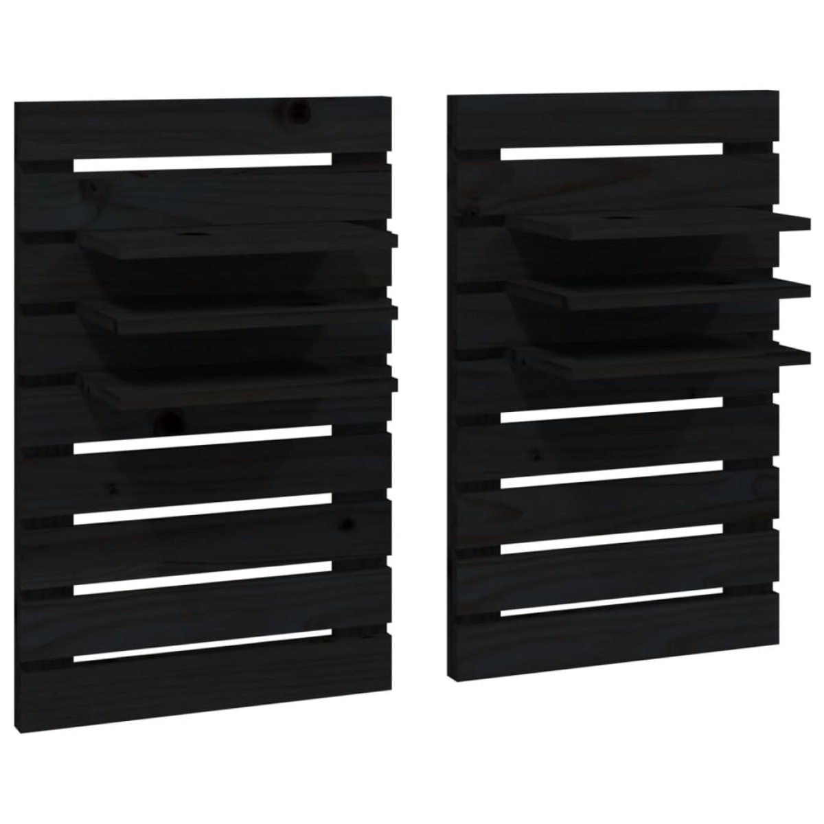 vidaXL Wall-mounted Bedside Shelves 2 pcs Black Solid Wood Pine