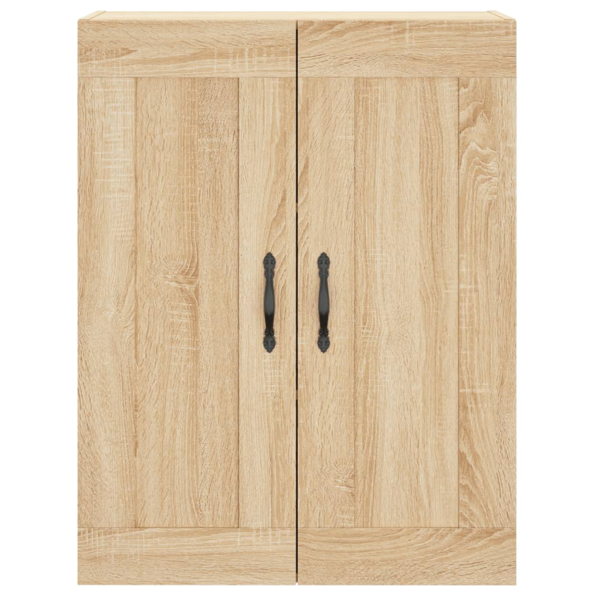This wall mounted cabinet with an elegant design makes a timeless addition to your interior decor. Sturdy material: The engineered wood is of exceptional quality with smooth surface and also features strength, stability, and resistance to moisture.Ample storage space: The storage cabinet has 3 compartments with 2 doors, providing ample storage space for keeping your daily essentials well organised.Wall-mounted function: This hanging cabinet doesn't take up any floor space. You can hang it on the wall easily.Elegant handles: The black aluminium alloy door handles which are stylish and durable make your cabinet more attractive.Versatile cabinet: You can also put this floating storage cabinet on top of a sideboard to form a highboard, creating extra storage space. And the simple design makes it suitable for your living room, bedroom, study, and any other living space. Good to know:Screws and plugs for inside the wall are not included. We advise you to find and use screws and plugs suitable specifically for your walls. If you're not sure, you can consult with a professional. Please read and follow each step of the instructions.