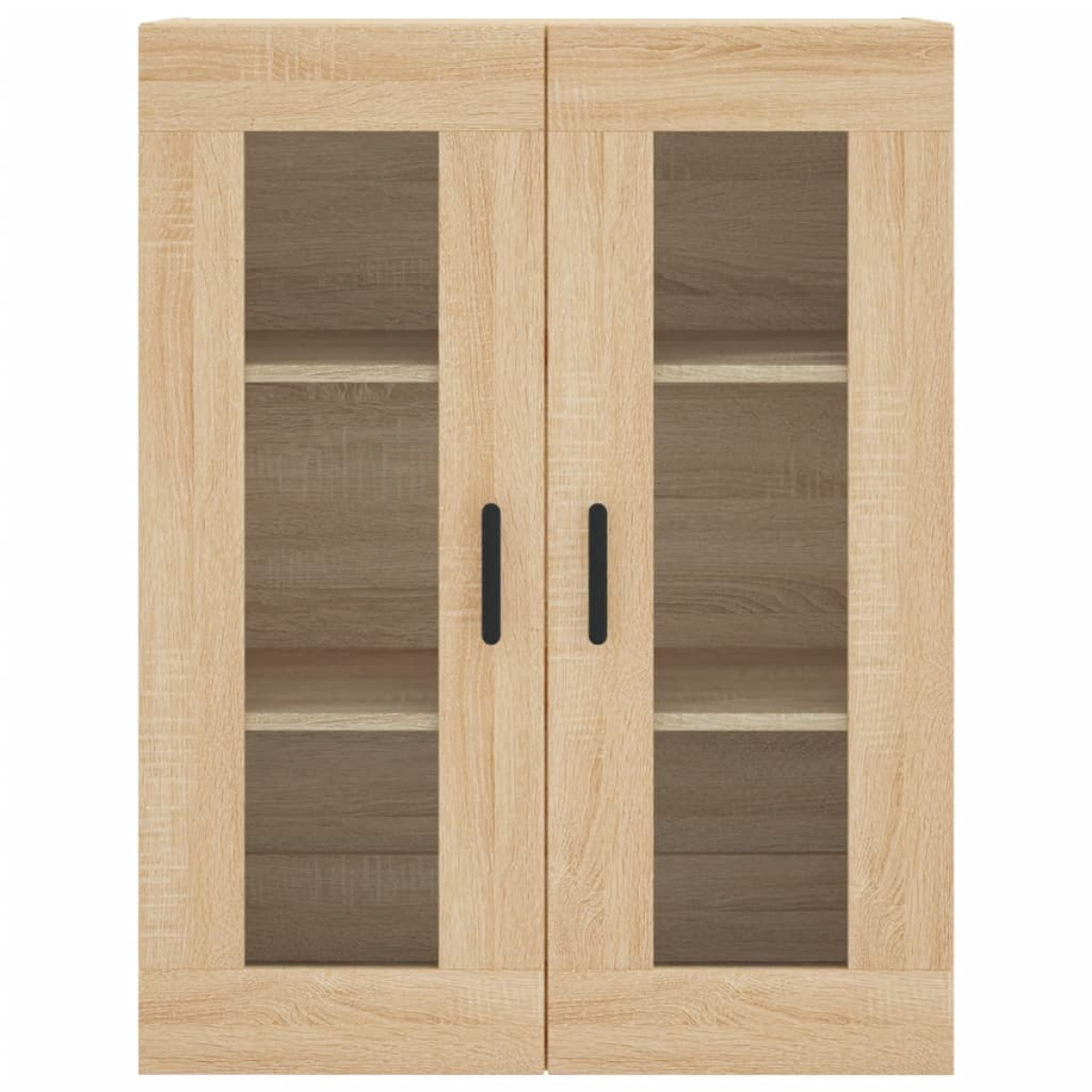 This wall mounted cabinet with an elegant design makes a timeless addition to your interior decor. Durable material: The engineered wood is of exceptional quality with smooth surface and also features strength, stability and resistance to moisture. Made of engineered wood, this storage cabinet is sturdy and durable. Ample storage space: The hanging cabinet offers ample storage space for keeping your various daily essentials well organised and within easy reach.Wall-mounted function: The hanging wall cabinet doesn't take any floor space. You can hang it on the wall easily.Practical design: Your belongings are visible behind the glass door and at the same time protected from dust. In addition, the handles make it easy to open the side cabinet.Versatile cabinet: You can also put this floating storage cabinet on top of a sideboard to form a highboard, creating extra storage space. And the simple design makes it suitable for your living room, bedroom, study, and any other living space. Good to know:Screws and plugs for inside the wall are not included. We advise to find and use screws and plugs suitable specifically for your walls. If you're not sure, you can consult with a professional. Please read and follow each step of the instructions.