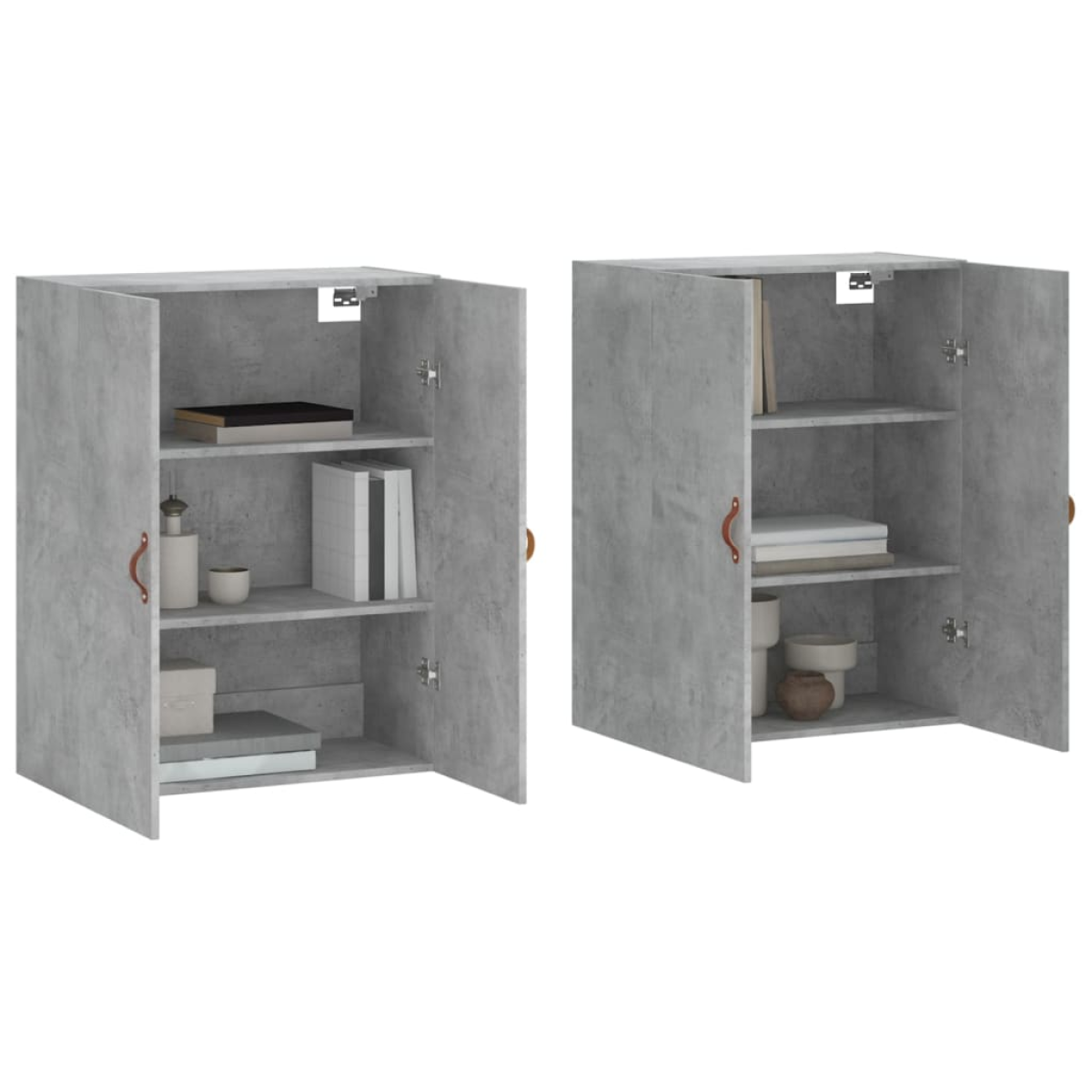 These wall mounted cabinets with an elegant design make a timeless addition to your interior decor. Durable material: The engineered wood is of exceptional quality with smooth surface and also features strength, stability and resistance to moisture. Made of engineered wood, this storage cabinet is sturdy and durable.Ample storage space: The wall mounted display cabinet offers ample storage space for keeping your various daily essentials well organised and within easy reach.Wall-mounted function: The storage cabinet with doors doesn't take any floor space. You can hang it on the wall easily.Practical doors: Keep your essentials free from dust by hiding them behind the doors. In addition, the handles make it easy to open the wall cabinet.Wide application: The simple design makes the wall cupboard suitable for your living room, bedroom, study, and any other living space. Good to know:Screws and plugs for inside the wall are not included. We advise to find and use screws and plugs suitable specifically for your walls. If you're not sure, you can consult with a professional. Please read and follow each step of the instructions.