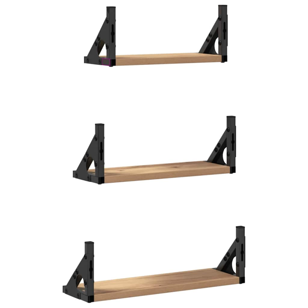 This Modern Wall-Mounted Storage Shelf set effortlessly enhances home aesthetics with its sleek, minimalist design. These shelves provide a seamless solution for your storage needs, catering to various household settings. With clean lines and a chic appearance, they fit neatly into contemporary interiors, offering practicality without compromising style. Whether displaying cherished ornaments or organizing books, these shelves transform bare walls into functional works of art, suitable for modern homes. Materials: These wall-mounted shelves are crafted from premium engineered wood and sturdy metal, forming a robust and reliable structure. Engineered wood offers a smooth finish, enhancing the overall look, while the metal components provide excellent supporting strength. This blend guarantees both durability and aesthetic appeal, making it a perfect choice for long-term indoor use. Included Components: The set includes three distinctively sized shelves, each designed to meet different storage requirements. The varying dimensions allow flexibility in organizing your items—from displaying decorative pieces to arranging books and photo frames— ensuring that each shelf serves a unique purpose in your space, adding both functionality and style. Space Saving Design: With a wall-mounted design, these shelves efficiently utilize vertical space, making them ideal for smaller living areas or rooms where floor space is limited. Easy to install, they provide a streamlined and organized look, complementing modern and minimalist interior themes, thereby ensuring an uncluttered living environment. Ample Storage: Featuring generous storage space, these shelves accommodate various belongings, from everyday essentials to decorative items. Whether you're storing kitchen spices or bathroom towels, their ample room ensures everything finds its place, maintaining a tidy and stylish arrangement. Installation Insight: Delivered as a set of three distinct shelves, these require a two-person assembly using a screwdriver for mounting. Following the assembly guidelines ensures proper installation, providing a secure setup on your walls.