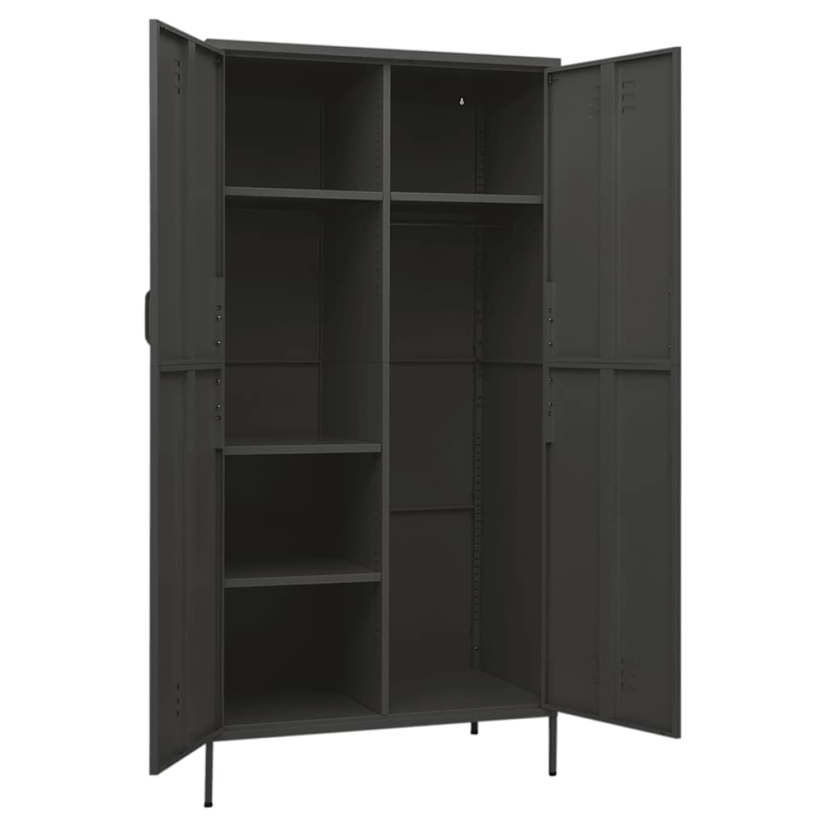 Keep your interior well organised and tidy with this wardrobe. It presents a perfect storage solution and adds chic touch to your existing home. This clothing cabinet is made of steel, making it durable as well as easy to clean. This clothing cabinet has 4 adjustable shelves and a large compartment with a hanging rod, which offer you ample storage space both for your longer outfits and other folded clothes or accessories, such as sweaters, jeans, hats, hand bags, etc.