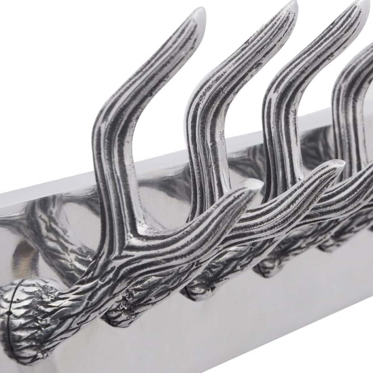 This coat rack, decorated with beautiful antlers, will make a decorative as well as practical addition to your room. With an invisible mounting system, the coat rack serves as an ideal place to hang your coats, hats, bags, scarves etc. Made of high-quality aluminium with polished finish, this coat rack has a sturdy structure and is extremely durable. It has 6 hooks to hang something you love. This coat rack will suit any decor and turn an empty wall or dull wardrobe into a feature! Delivery includes 4 racks.