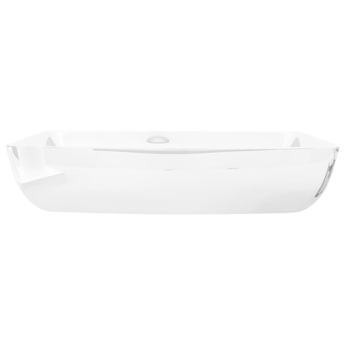 Made of elegant ceramic, this square-shaped basin will be a chic and timeless addition to any bathroom, washroom, cloakroom or powder room. The washroom basin can not only serve as vessel for daily use, but also an adornment in your living space. Thanks to its trendsetting and contemporary design, this wash basin will definitely suit any decor. Made of ceramic, the sink is considerably easy to clean. Additionally, its high gloss finish adds a charming touch to this bathroom basin. Please note that the tap and the drain are not included in delivery.