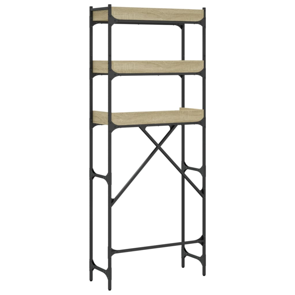 This 3-tier washing machine shelf is a perfect solution to create extra storage spaces for an overcrowded bathroom or laundry room. Durable material: The engineered wood is of exceptional quality with smooth surface and also features strength, stability and resistance to moisture. Made of engineered wood, the bathroom shelf is easy to clean.Ample storage space: The bathroom storage features 3 shelves, offering ample space to easily hold your essential cleaning supplies such as soap, laundry detergent, fabric softener, and more.Space-saving design: The bathroom organiser is designed to be placed above the washing machine or toilet, fitting well in small spaces and making it ideal for small bathrooms and laundry rooms.Adjustable feet: The adjustable feet with plastic pads keep the toilet stand balanced on uneven ground and increase stability.Metal frame: The metal frame adds an industrial style to your interior while ensuring durability and stability. Warning:To prevent it being overturned, this product must be used with the provided wall attachment device. Good to know:Screws and plugs for inside the wall are not included. We advise to find and use screws and plugs suitable specifically for your walls. If you're not sure, you can consult with a professional. Please read and follow each step of the instructions.