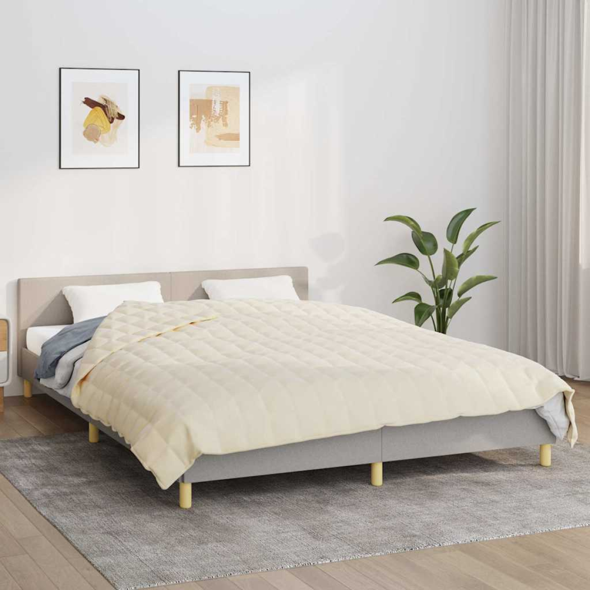 Problems sleeping at night? This weighted blanket is the perfect sleeping help. This blanket gives a soft and comfortable pressure that helps your body and mind to find the rest it needs. Comfortable fabric: The fabric features a simple and clean look, and is breathable and durable. One side of this quilt blanket is made of short floss fabric and the other side is made of brushed fabric.Hypoallergenic filling: The blanket is filled with a combination of polyester fibres and hypoallergenic odourless glass beads.Even weight distribution: The heavy blanket is designed to simulate 10% of your body weight. Its compact quilted pockets distribute the weight evenly across your entire body.Practical internal loops: The calming blanket with internal loops can be secured to any duvet cover of the same size.