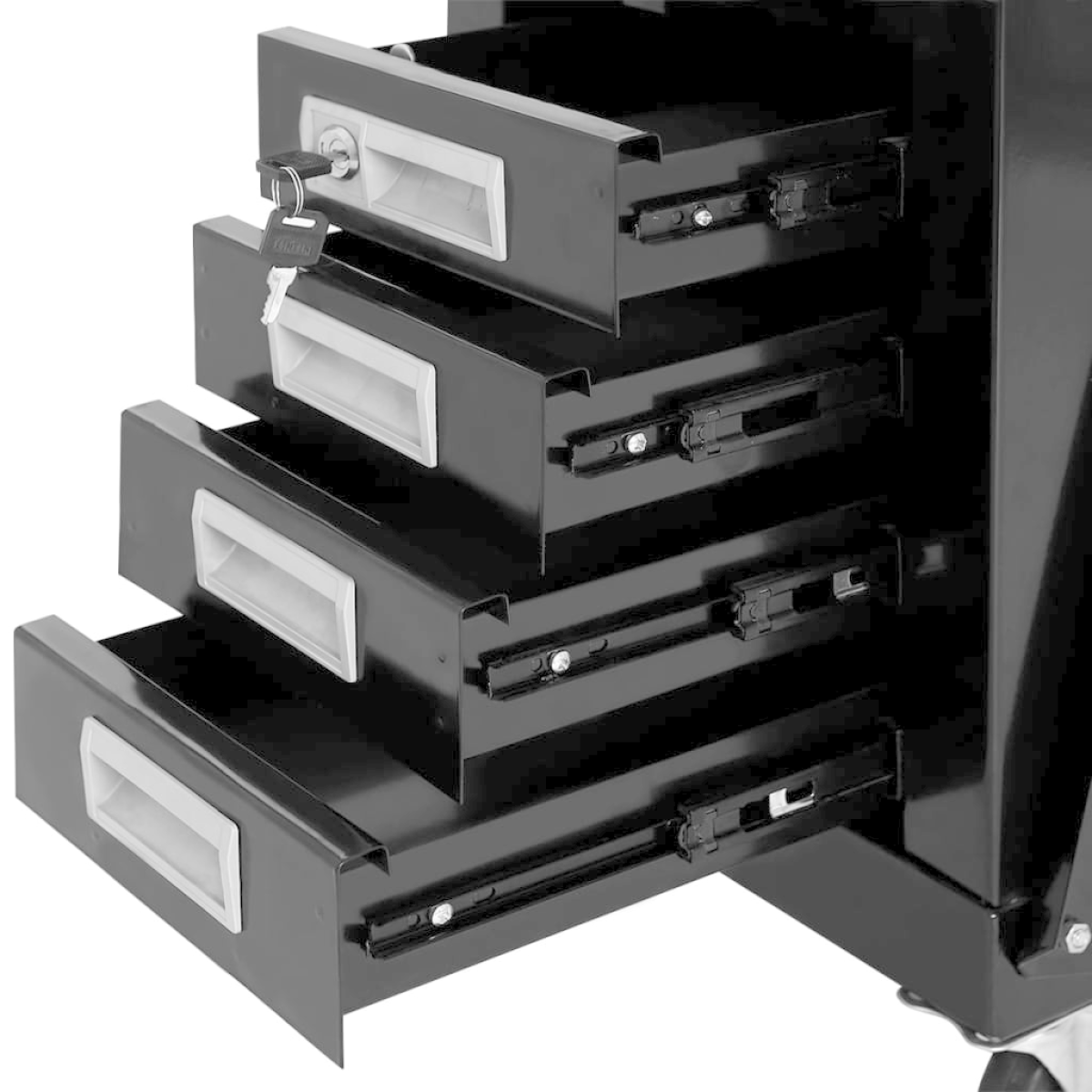 This welding cart provides a very practical and convenient way to store tools for your welding tasks. The durable and reliable welding cart is made of premium steel. It can support up to 70 kg. With built-in wheels, it is smooth and easy to move. Its 4 drawers have ample space for organising and storing your welding tools. All 4 drawers can be locked at once with the integrated lock, which prevents the drawers from opening accidentally when the trolley is moved.