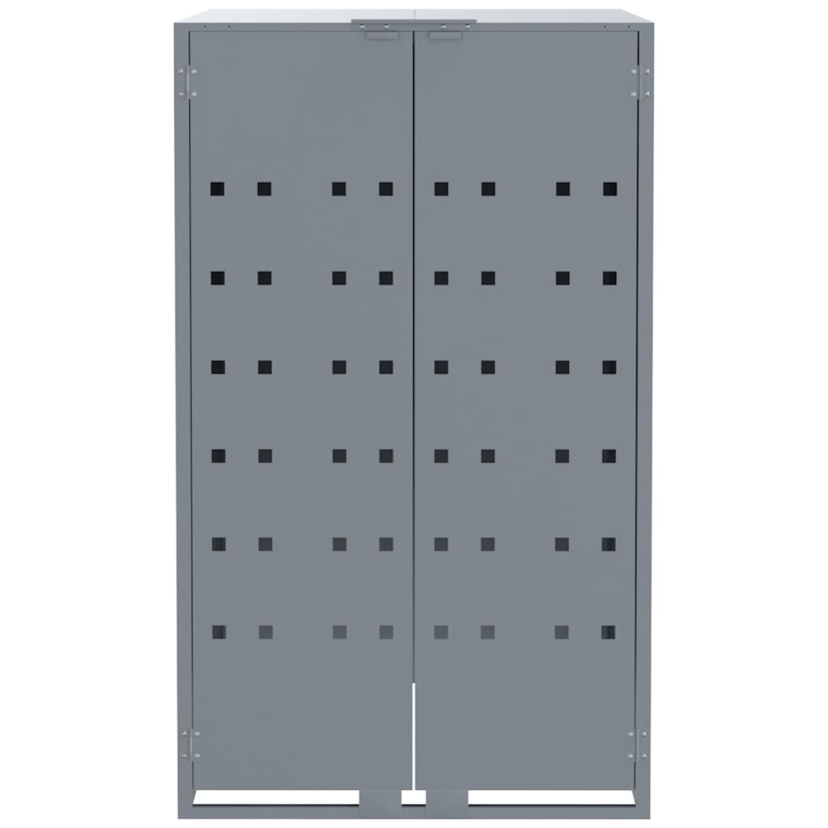 This wheelie bin storage discreetly hides your garbage bins in the garden, transforming your outdoor space into a beautiful and tidy environment. Strong and durable material: The powder-coated steel provides strength, stability, durability, and resistance to corrosion and harsh weather conditions, ensuring long-lasting performance.Practical lid mechanism: The gas-spring lid comes with a bungee cord that connects your bin's lid to it, so the bin lid opens automatically when you lift the lid of the bin store.Easy access: The front doors with magnetic closures make it a breeze to remove and replace the bins, ensuring waste disposal is effortless.Good ventilation: These vents on the panels promote air circulation, preventing odour buildup and keeping your bins fresh.Flexible design: You can enlarge your bin shed to accommodate more bins by adding extra extensions. These extensions are available for individual purchase at the store.