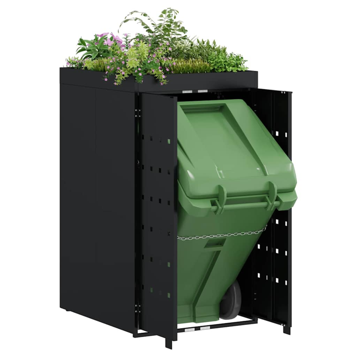 vidaXL Wheelie Bin Storage with Planter Roof for Single 240L Bin Black