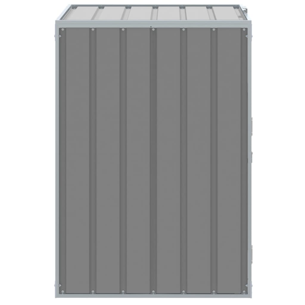This wheelie bin storage discreetly hides your garbage bins in the garden, transforming your outdoor space into a beautiful and tidy environment. Strong and durable material: The powder-coated steel provides strength, stability, durability, and resistance to corrosion and harsh weather conditions, ensuring long-lasting performance.Practical lid mechanism: The lid comes with chains that connect your bin's lid to it, so the bin lid opens automatically when you lift the lid of the bin store.Easy access: The front doors with a latch system make it a breeze to remove and replace the bins, ensuring waste disposal is effortless.Good ventilation: These vents on the panels promote air circulation, preventing odour buildup and keeping your bins fresh.Flexible design: You can expand this wheelie bin storage to hold more bins by adding extra extensions. These extensions are available for individual purchase at the store.