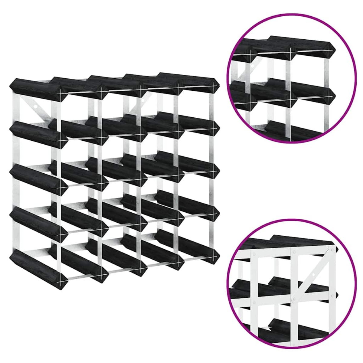 vidaXL Wine Rack for 20 Bottles Black Solid Pine Wood