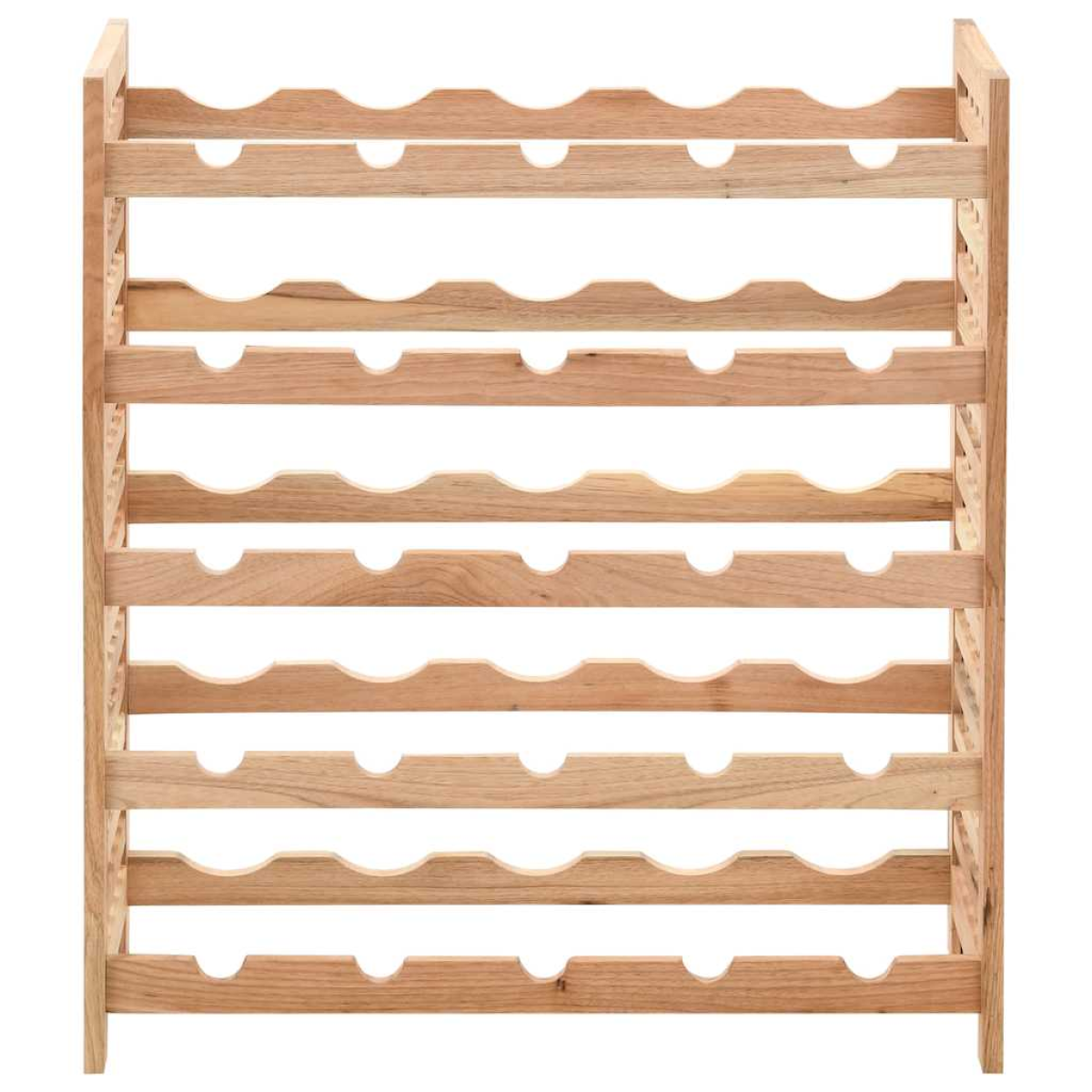This 5-tier wine rack, made of solid walnut wood, will bring a touch of natural style to your home and provides an ideal storage solution for your wine bottles. The wooden wine storage rack has five shelves and can hold up to 25 wine bottles. Its side planks are formed by the beautiful frame that keeps the wine ventilated but also gives the wine rack an elegant look. The compact, stylish bottle holder will suit your interior decor perfectly. The wine rack is easy to assemble. Note: Wood is a natural product so colours may vary from batch to batch; delivery is random.