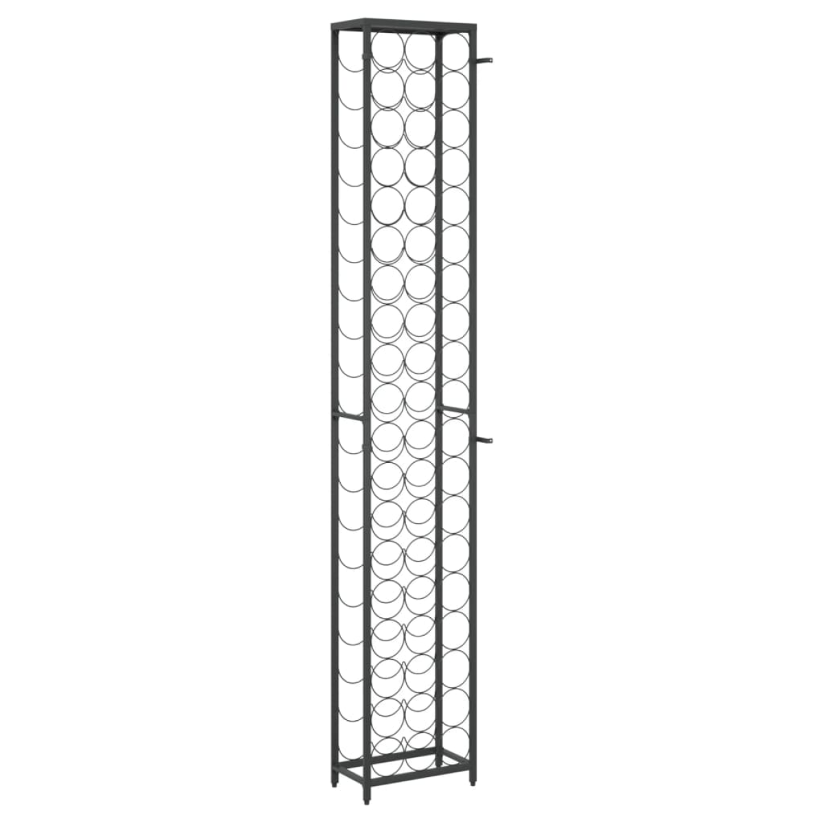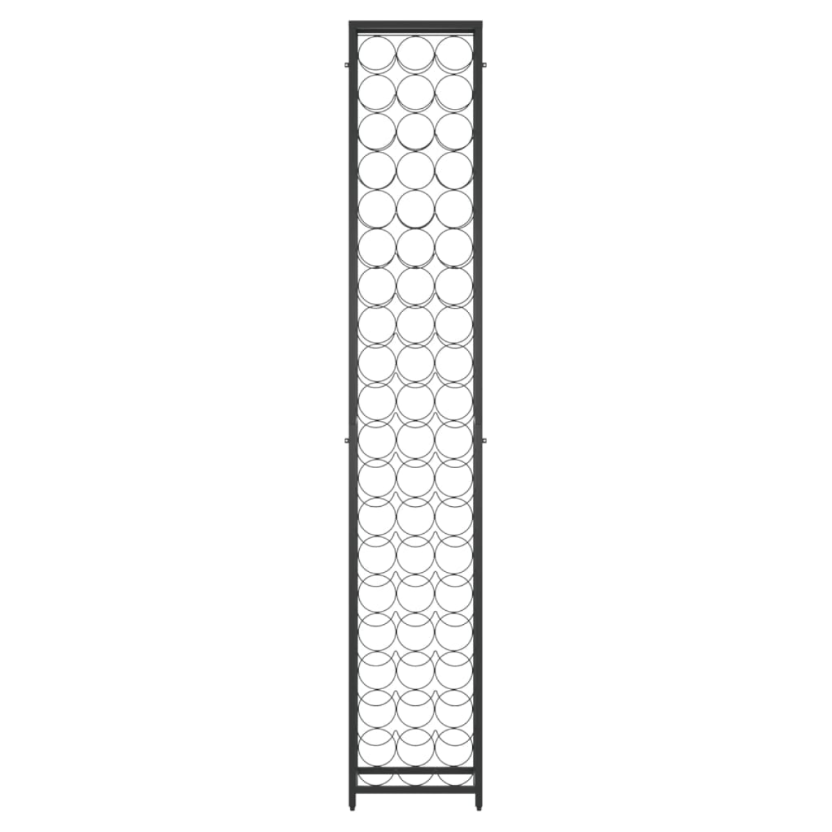 Store, age and display your wine in style with this wine rack! Large capacity: This wine holder can hold up to 57 bottles, effectively maximising storage space and keeping the area tidy. Stable construction: This wine bottle holder is made of sturdy wrought iron with a black powder-coated finish to resist oxidation and rust. The included wall fixings prevent the wine stand from swaying or tilting, making it suitable for years of use. Suitable for many places: Featuring a simple and elegant design, this wine storage rack is perfect for use in bars, wine cellars, kitchens, restaurants, and more. Warning:To prevent it being overturned, this product must be used with the provided wall attachment device.