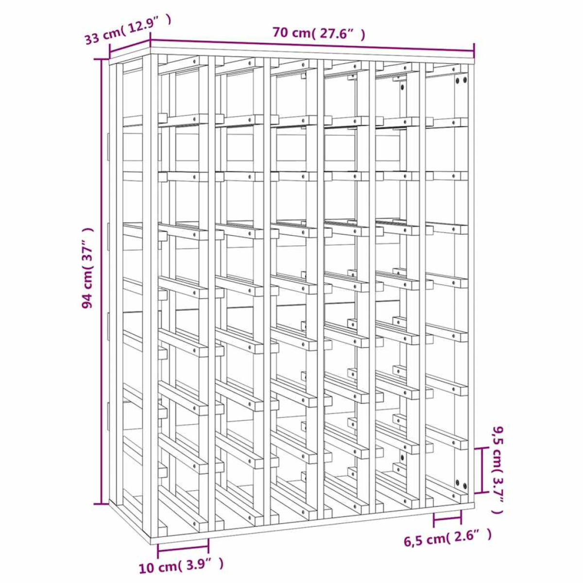 Store, age and display your wine in style with this wooden wine rack! Solid pine wood: Solid pine wood is a beautiful natural material. Pine wood has a straight grain, and the knots give the material its signature, rustic look.Ample storage space: The wine holder provides ample storage space to store your wine. It is ideal for holding up to 48 bottles of wine. Sturdy frame: The wooden frame ensures sturdiness and stability. Warning:In order to prevent overturning, this product must be used with the wall attachment device provided. Note:Each product comes with an assembly manual in the box for easy assembly.