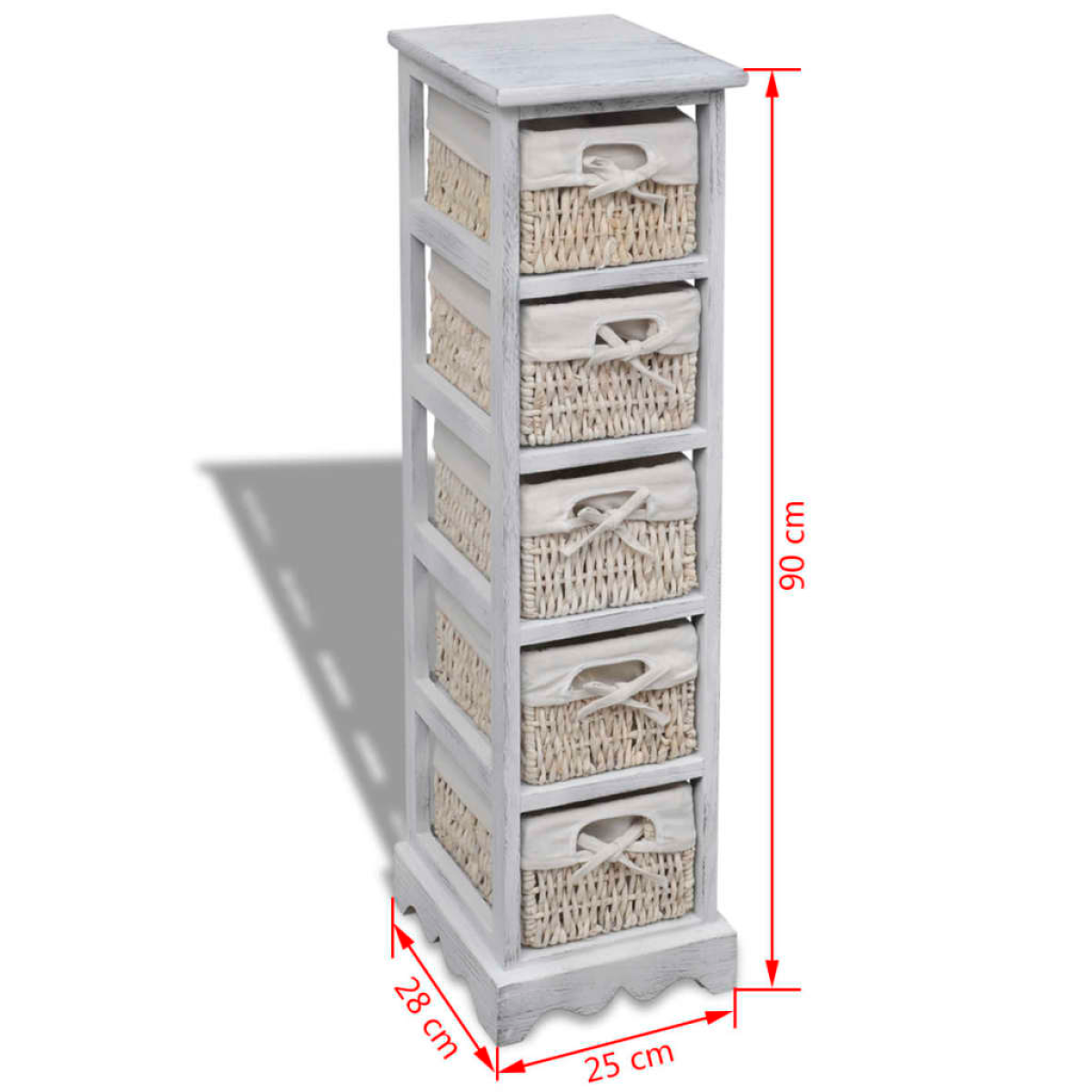 This stunning storage rack, made of high quality wood, features a simple but stylish design. It not only stores your stuff but enhances your room decor as well. Coming complete with five weaving baskets, this durable wooden rack provides you with plenty of space to store your valuables, and at the same time brings country style to your room. Our wooden rack will surely be one of your favorite furnishings in any room. Warning: To prevent it being overturned, this product must be used with the provided wall attachment device.