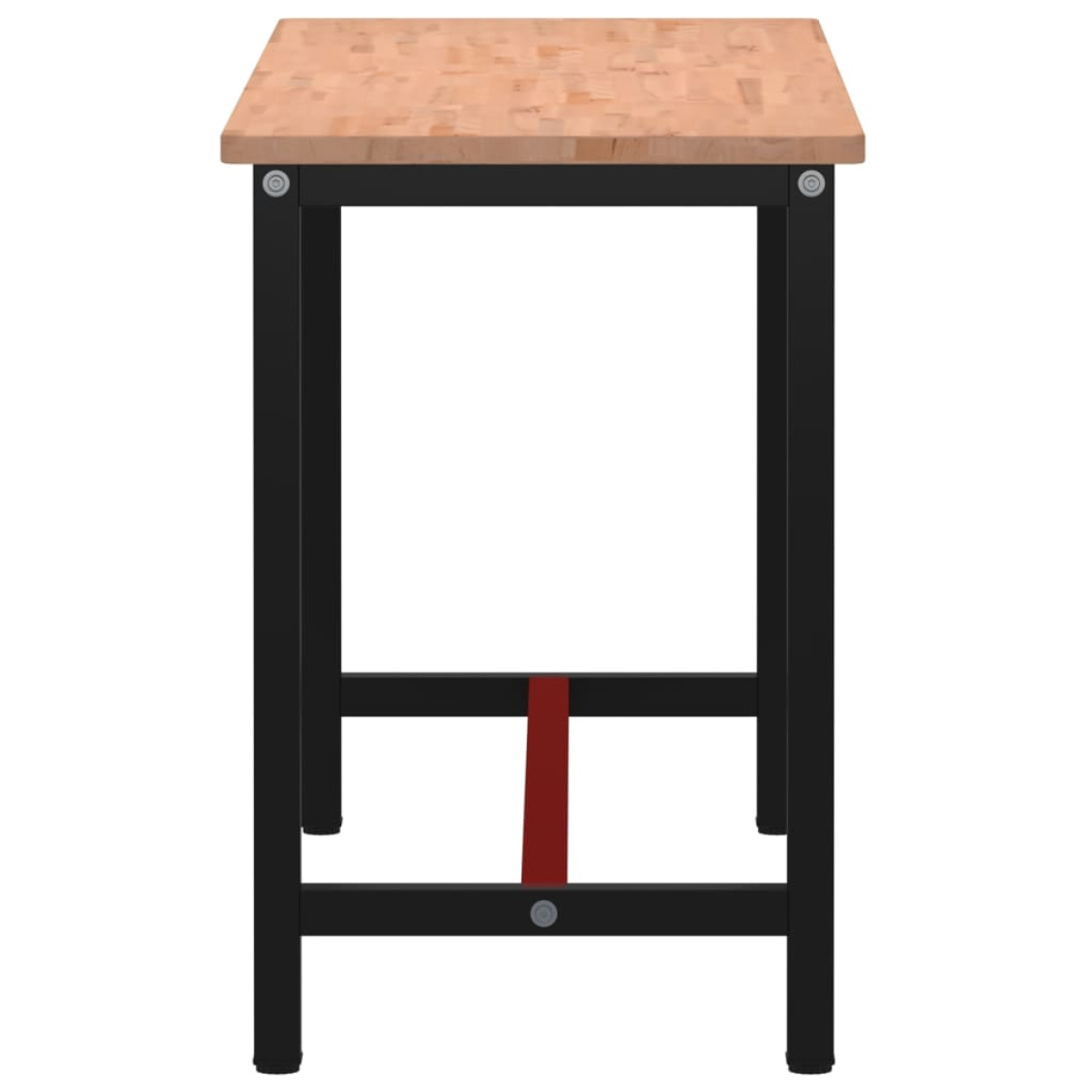 The workbench is a great helper whether you want to finish repair work or fulfil your DIY dreams! Solid beech wood: The workbench top is made of solid beech wood, which is a beautiful natural material. Beech wood has a straight grain and is very durable.Sturdy frame: The powder-coated metal frame ensures sturdiness and stability. The upper and bottom sides have reinforced bars for added support and strength.Large working area: The work table provides a large working area to place your drills, cable drums, and other tool accessories.Versatile use: Features a simple and clean design, you can use it as a tool bench or work desk according to your needs. The workstation is meant to be a practical and convenient piece of furniture. Good to know:Each item is unique with variations in colours and grains. The delivery is random, ensuring the exclusivity and individuality of your product.