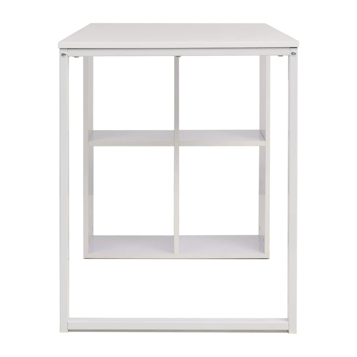 Our modern writing desk will make a great addition to your office or study. This desk consists of engineered wood top and steel legs and is stable, durable, and low maintenance. The 4 large compartments on the side of the table provide ample storage space for keeping your study supplies such as books, files or other useful items within reach. The desk is easy to clean with a damp cloth because of its melamine finish. The desk is easy to assemble.