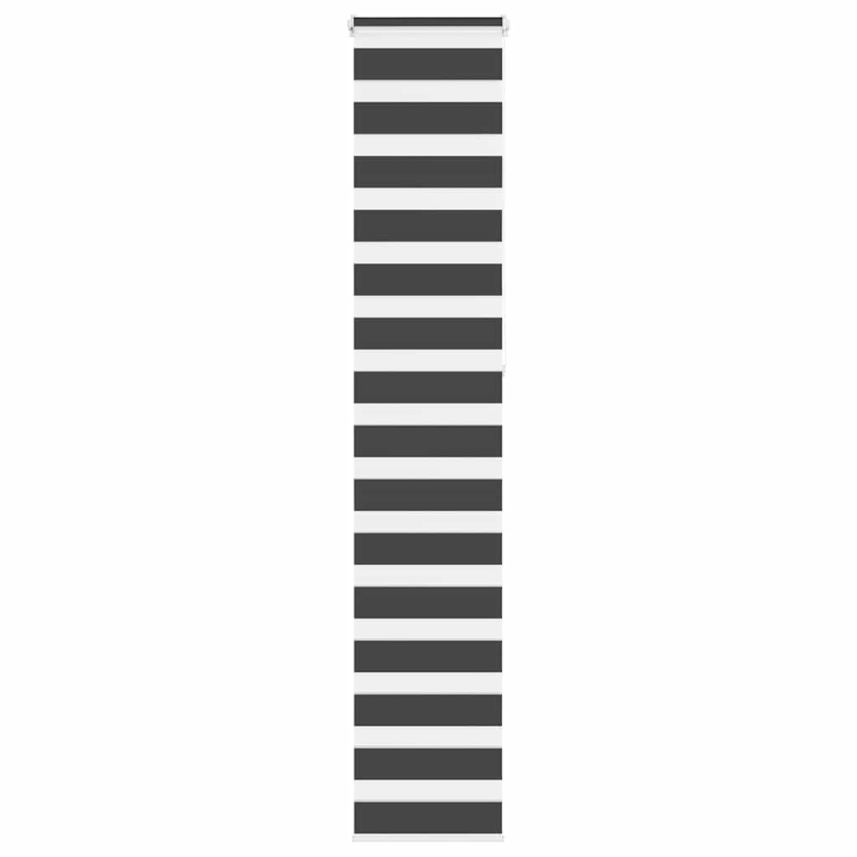 Elevate your room's style and functionality with this zebra blind, offering privacy and elegance. Durable and low maintenance: Made from 100% polyester, the zebra blind is built to last and resist wear and tear. They are also easy to clean, typically requiring light dusting or wiping with a damp cloth.Privacy and sun protection: The two-layer design features alternating transparent and opaque fabric panels. The light can be easily controlled using the chain hoist, allowing for seamless adjustment of the room's lighting from translucent to fully darkened.Two assembly ways: You can attach the zebra roller blind to the wall or window with screws or without drilling using clamping brackets, depending on your needs.Elegant design: Thanks to its sleek and modern pattern design, this zebra roller blind effortlessly complements a variety of room decor. You can use it in the living room, bedroom, office, and so on.Child safety and adjustability: The roller blind includes a chain connector that makes it easy to adjust the height according to your needs, and it also has a cord clip to add child safety. Warning:Keep cords out of the reach of young children. Cords may become wrapped around a child’s neck. Good to know:Before buying blinds, start by measuring your window glass. Just a friendly tip: the fabric is a bit narrower than the total width, including the brackets.To make sure your new blinds provide complete coverage, just add 4,1 cm to the width of the window glass when calculating what to order.