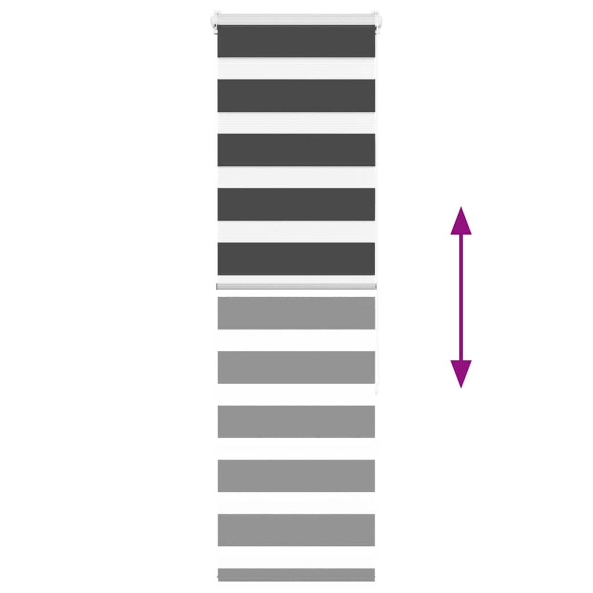 Elevate your room's style and functionality with this zebra blind, offering privacy and elegance. Durable and low maintenance: Made from 100% polyester, the zebra blind is built to last and resist wear and tear. They are also easy to clean, typically requiring light dusting or wiping with a damp cloth.Privacy and sun protection: The two-layer design features alternating transparent and opaque fabric panels. The light can be easily controlled using the chain hoist, allowing for seamless adjustment of the room's lighting from translucent to fully darkened.Two assembly ways: You can attach the zebra roller blind to the wall or window with screws or without drilling using clamping brackets, depending on your needs.Elegant design: Thanks to its sleek and modern pattern design, this zebra roller blind effortlessly complements a variety of room decor. You can use it in the living room, bedroom, office, and so on.Child safety and adjustability: The roller blind includes a chain connector that makes it easy to adjust the height according to your needs, and it also has a cord clip to add child safety. Warning:Keep cords out of the reach of young children. Cords may become wrapped around a child’s neck. Good to know:Before buying blinds, start by measuring your window glass. Just a friendly tip: the fabric is a bit narrower than the total width, including the brackets.To make sure your new blinds provide complete coverage, just add 4,1 cm to the width of the window glass when calculating what to order.