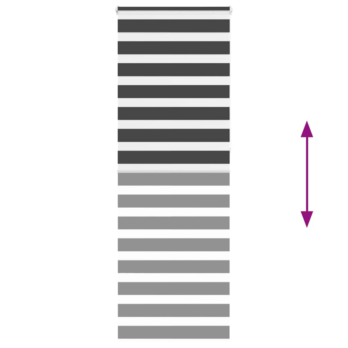 Elevate your room's style and functionality with this zebra blind, offering privacy and elegance. Durable and low maintenance: Made from 100% polyester, the zebra blind is built to last and resist wear and tear. They are also easy to clean, typically requiring light dusting or wiping with a damp cloth.Privacy and sun protection: The two-layer design features alternating transparent and opaque fabric panels. The light can be easily controlled using the chain hoist, allowing for seamless adjustment of the room's lighting from translucent to fully darkened.Two assembly ways: You can attach the zebra roller blind to the wall or window with screws or without drilling using clamping brackets, depending on your needs.Elegant design: Thanks to its sleek and modern pattern design, this zebra roller blind effortlessly complements a variety of room decor. You can use it in the living room, bedroom, office, and so on.Child safety and adjustability: The roller blind includes a chain connector that makes it easy to adjust the height according to your needs, and it also has a cord clip to add child safety. Warning:Keep cords out of the reach of young children. Cords may become wrapped around a child’s neck. Good to know:Before buying blinds, start by measuring your window glass. Just a friendly tip: the fabric is a bit narrower than the total width, including the brackets.To make sure your new blinds provide complete coverage, just add 4,1 cm to the width of the window glass when calculating what to order.