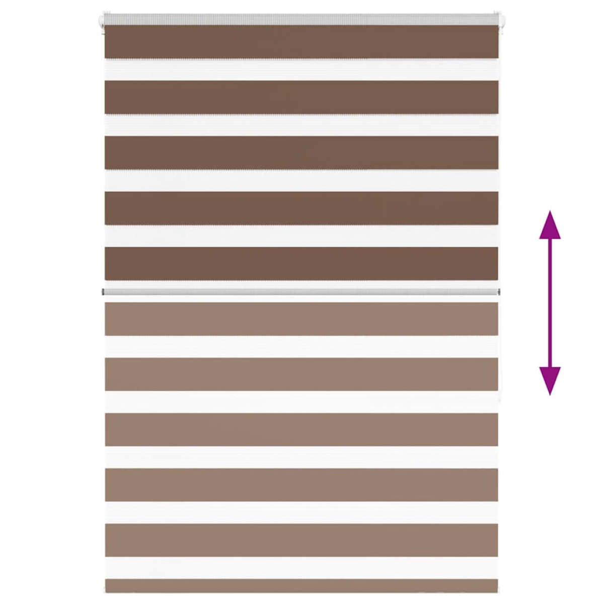 Elevate your room's style and functionality with this zebra blind, offering privacy and elegance. Durable and low maintenance: Made from 100% polyester, the zebra blind is built to last and resist wear and tear. They are also easy to clean, typically requiring light dusting or wiping with a damp cloth.Privacy and sun protection: The two-layer design features alternating transparent and opaque fabric panels. The light can be easily controlled using the chain hoist, allowing for seamless adjustment of the room's lighting from translucent to fully darkened.Two assembly ways: You can attach the zebra roller blind to the wall or window with screws or without drilling using clamping brackets, depending on your needs.Elegant design: Thanks to its sleek and modern pattern design, this zebra roller blind effortlessly complements a variety of room decor. You can use it in the living room, bedroom, office, and so on.Child safety and adjustability: The roller blind includes a chain connector that makes it easy to adjust the height according to your needs, and it also has a cord clip to add child safety. Warning:Keep cords out of the reach of young children. Cords may become wrapped around a child’s neck. Good to know:Before buying blinds, start by measuring your window glass. Just a friendly tip: the fabric is a bit narrower than the total width, including the brackets.To make sure your new blinds provide complete coverage, just add 4,1 cm to the width of the window glass when calculating what to order.