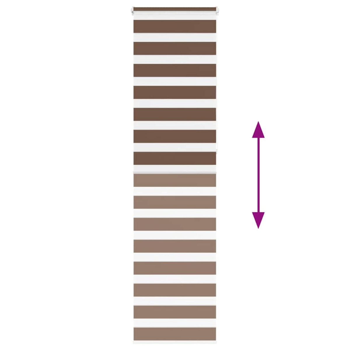 Elevate your room's style and functionality with this zebra blind, offering privacy and elegance. Durable and low maintenance: Made from 100% polyester, the zebra blind is built to last and resist wear and tear. They are also easy to clean, typically requiring light dusting or wiping with a damp cloth.Privacy and sun protection: The two-layer design features alternating transparent and opaque fabric panels. The light can be easily controlled using the chain hoist, allowing for seamless adjustment of the room's lighting from translucent to fully darkened.Two assembly ways: You can attach the zebra roller blind to the wall or window with screws or without drilling using clamping brackets, depending on your needs.Elegant design: Thanks to its sleek and modern pattern design, this zebra roller blind effortlessly complements a variety of room decor. You can use it in the living room, bedroom, office, and so on.Child safety and adjustability: The roller blind includes a chain connector that makes it easy to adjust the height according to your needs, and it also has a cord clip to add child safety. Warning:Keep cords out of the reach of young children. Cords may become wrapped around a child’s neck. Good to know:Before buying blinds, start by measuring your window glass. Just a friendly tip: the fabric is a bit narrower than the total width, including the brackets.To make sure your new blinds provide complete coverage, just add 4,1 cm to the width of the window glass when calculating what to order.