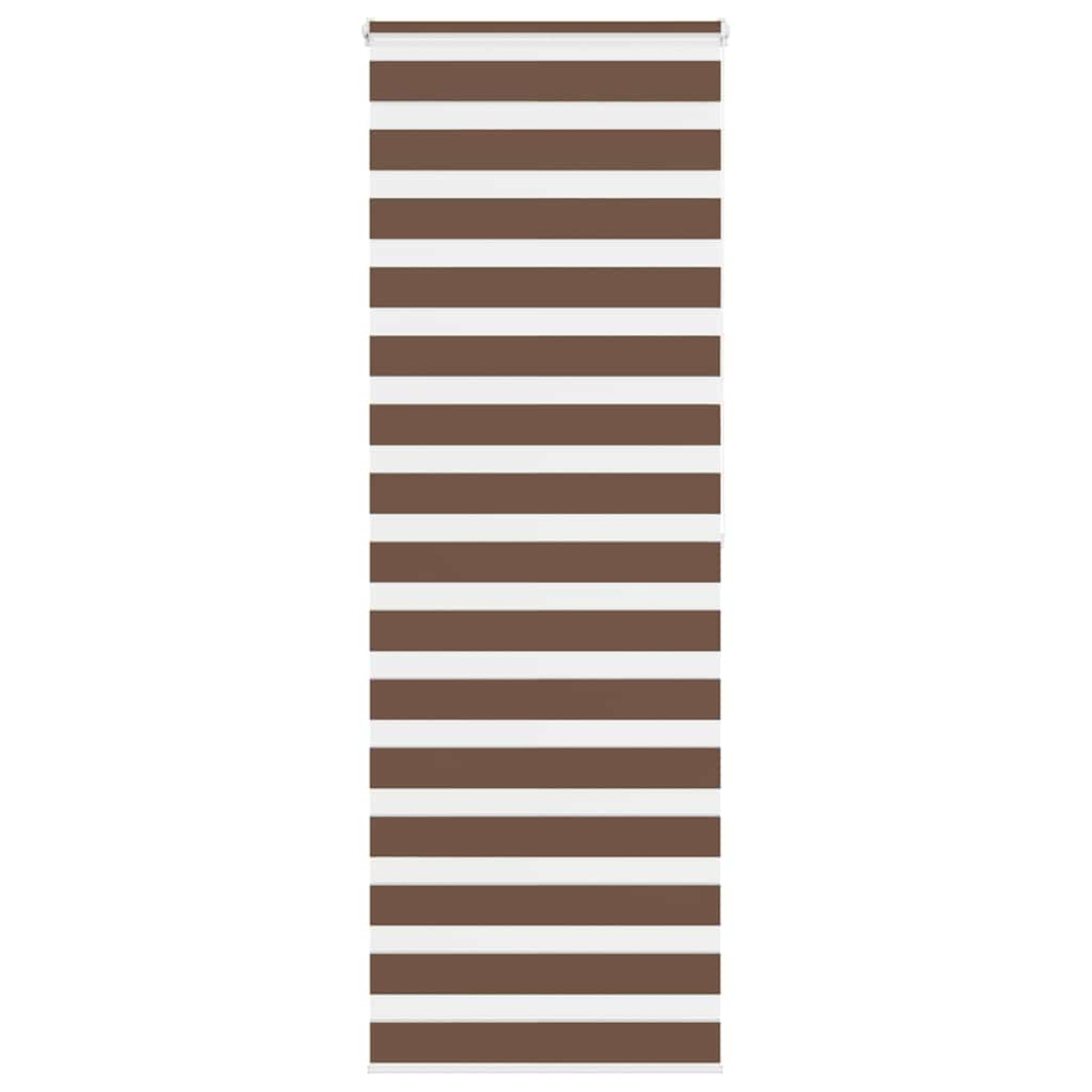Elevate your room's style and functionality with this zebra blind, offering privacy and elegance. Durable and low maintenance: Made from 100% polyester, the zebra blind is built to last and resist wear and tear. They are also easy to clean, typically requiring light dusting or wiping with a damp cloth.Privacy and sun protection: The two-layer design features alternating transparent and opaque fabric panels. The light can be easily controlled using the chain hoist, allowing for seamless adjustment of the room's lighting from translucent to fully darkened.Two assembly ways: You can attach the zebra roller blind to the wall or window with screws or without drilling using clamping brackets, depending on your needs.Elegant design: Thanks to its sleek and modern pattern design, this zebra roller blind effortlessly complements a variety of room decor. You can use it in the living room, bedroom, office, and so on.Child safety and adjustability: The roller blind includes a chain connector that makes it easy to adjust the height according to your needs, and it also has a cord clip to add child safety. Warning:Keep cords out of the reach of young children. Cords may become wrapped around a child’s neck. Good to know:Before buying blinds, start by measuring your window glass. Just a friendly tip: the fabric is a bit narrower than the total width, including the brackets.To make sure your new blinds provide complete coverage, just add 4,1 cm to the width of the window glass when calculating what to order.