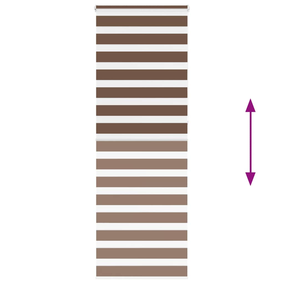 Elevate your room's style and functionality with this zebra blind, offering privacy and elegance. Durable and low maintenance: Made from 100% polyester, the zebra blind is built to last and resist wear and tear. They are also easy to clean, typically requiring light dusting or wiping with a damp cloth.Privacy and sun protection: The two-layer design features alternating transparent and opaque fabric panels. The light can be easily controlled using the chain hoist, allowing for seamless adjustment of the room's lighting from translucent to fully darkened.Two assembly ways: You can attach the zebra roller blind to the wall or window with screws or without drilling using clamping brackets, depending on your needs.Elegant design: Thanks to its sleek and modern pattern design, this zebra roller blind effortlessly complements a variety of room decor. You can use it in the living room, bedroom, office, and so on.Child safety and adjustability: The roller blind includes a chain connector that makes it easy to adjust the height according to your needs, and it also has a cord clip to add child safety. Warning:Keep cords out of the reach of young children. Cords may become wrapped around a child’s neck. Good to know:Before buying blinds, start by measuring your window glass. Just a friendly tip: the fabric is a bit narrower than the total width, including the brackets.To make sure your new blinds provide complete coverage, just add 4,1 cm to the width of the window glass when calculating what to order.