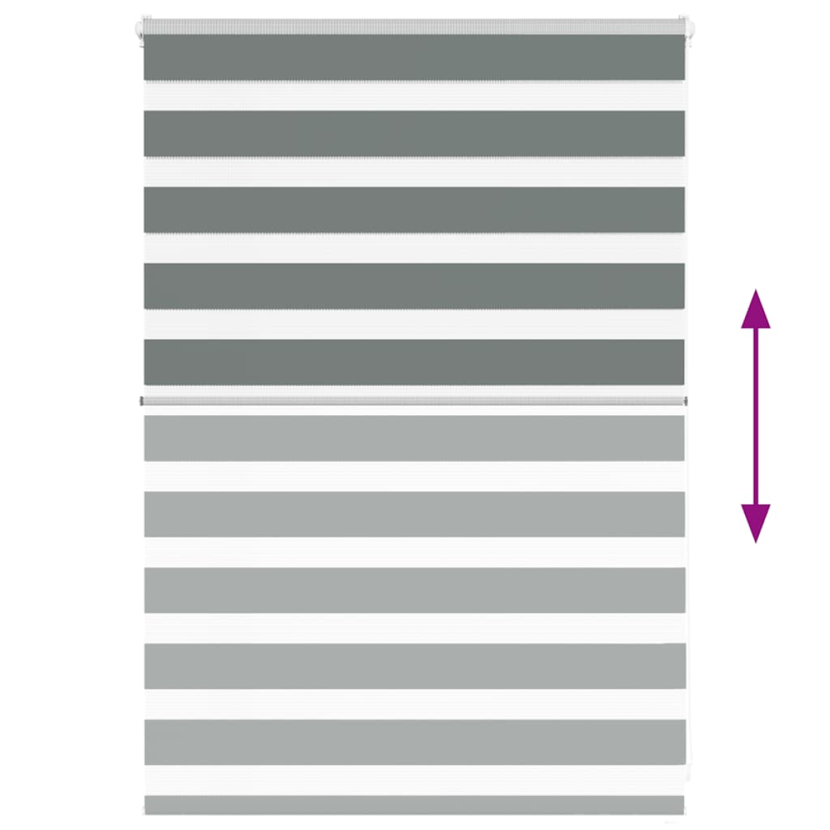Elevate your room's style and functionality with this zebra blind, offering privacy and elegance. Durable and low maintenance: Made from 100% polyester, the zebra blind is built to last and resist wear and tear. They are also easy to clean, typically requiring light dusting or wiping with a damp cloth.Privacy and sun protection: The two-layer design features alternating transparent and opaque fabric panels. The light can be easily controlled using the chain hoist, allowing for seamless adjustment of the room's lighting from translucent to fully darkened.Two assembly ways: You can attach the zebra roller blind to the wall or window with screws or without drilling using clamping brackets, depending on your needs.Elegant design: Thanks to its sleek and modern pattern design, this zebra roller blind effortlessly complements a variety of room decor. You can use it in the living room, bedroom, office, and so on.Child safety and adjustability: The roller blind includes a chain connector that makes it easy to adjust the height according to your needs, and it also has a cord clip to add child safety. Warning:Keep cords out of the reach of young children. Cords may become wrapped around a child’s neck. Good to know:Before buying blinds, start by measuring your window glass. Just a friendly tip: the fabric is a bit narrower than the total width, including the brackets.To make sure your new blinds provide complete coverage, just add 4,1 cm to the width of the window glass when calculating what to order.