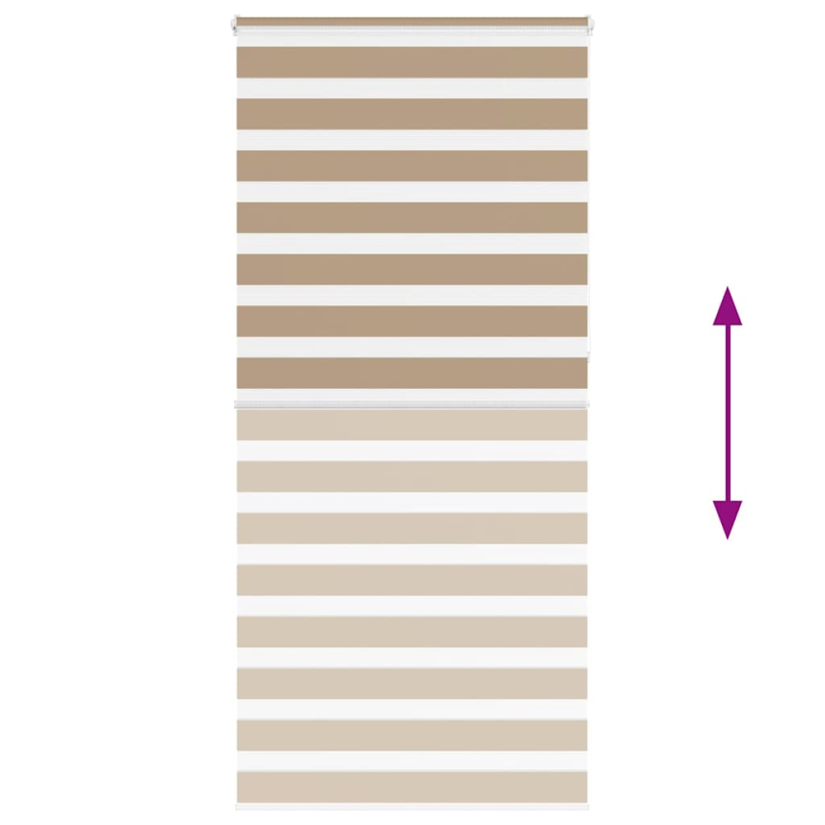 Elevate your room's style and functionality with this zebra blind, offering privacy and elegance. Durable and low maintenance: Made from 100% polyester, the zebra blind is built to last and resist wear and tear. They are also easy to clean, typically requiring light dusting or wiping with a damp cloth.Privacy and sun protection: The two-layer design features alternating transparent and opaque fabric panels. The light can be easily controlled using the chain hoist, allowing for seamless adjustment of the room's lighting from translucent to fully darkened.Two assembly ways: You can attach the zebra roller blind to the wall or window with screws or without drilling using clamping brackets, depending on your needs.Elegant design: Thanks to its sleek and modern pattern design, this zebra roller blind effortlessly complements a variety of room decor. You can use it in the living room, bedroom, office, and so on.Child safety and adjustability: The roller blind includes a chain connector that makes it easy to adjust the height according to your needs, and it also has a cord clip to add child safety. Warning:Keep cords out of the reach of young children. Cords may become wrapped around a child’s neck. Good to know:Before buying blinds, start by measuring your window glass. Just a friendly tip: the fabric is a bit narrower than the total width, including the brackets.To make sure your new blinds provide complete coverage, just add 4,1 cm to the width of the window glass when calculating what to order.