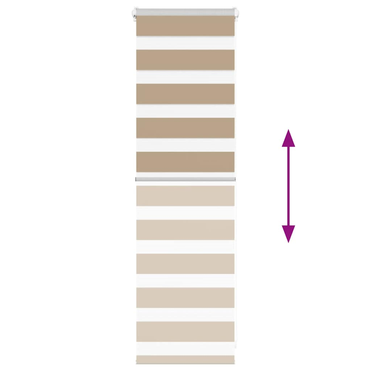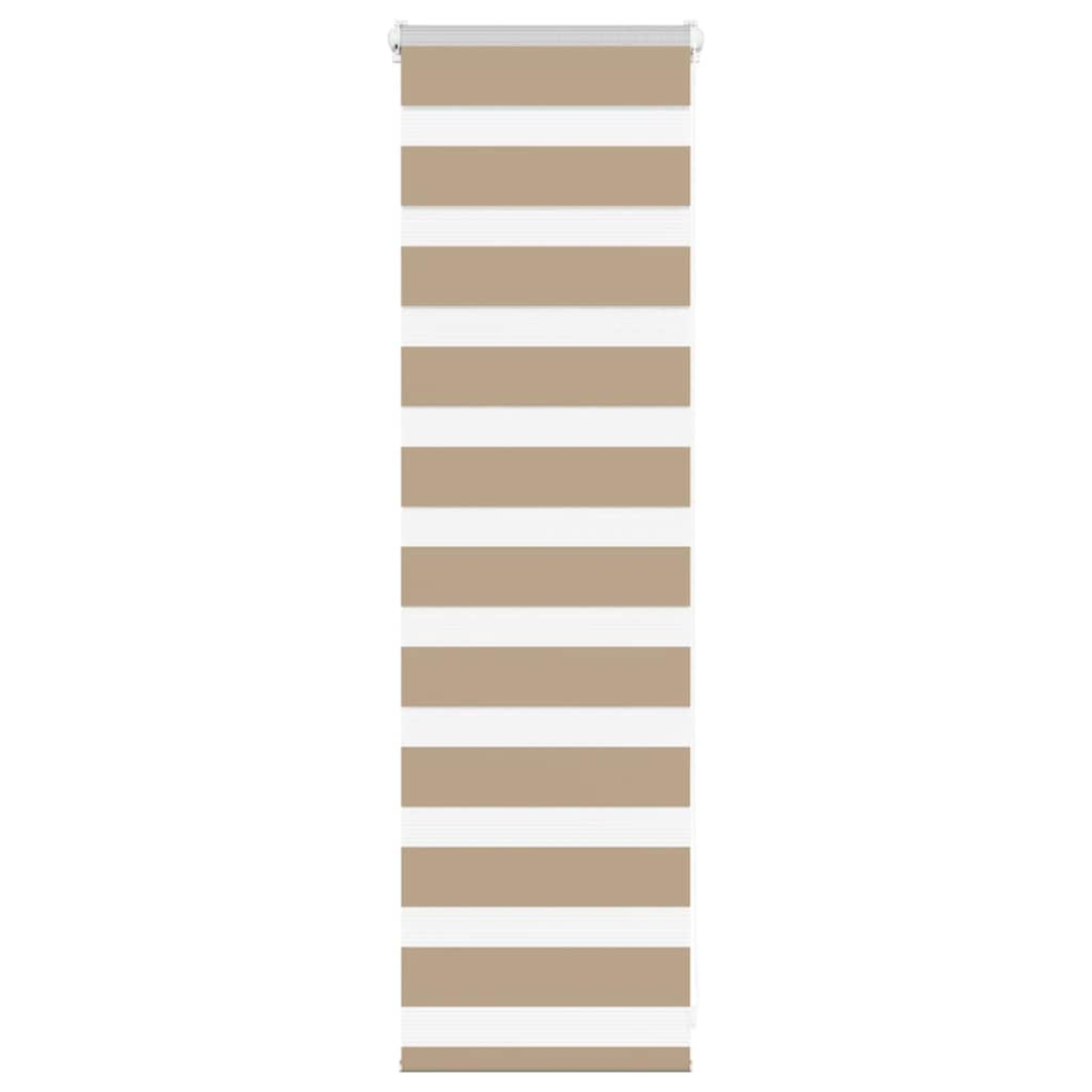 Elevate your room's style and functionality with this zebra blind, offering privacy and elegance. Durable and low maintenance: Made from 100% polyester, the zebra blind is built to last and resist wear and tear. They are also easy to clean, typically requiring light dusting or wiping with a damp cloth.Privacy and sun protection: The two-layer design features alternating transparent and opaque fabric panels. The light can be easily controlled using the chain hoist, allowing for seamless adjustment of the room's lighting from translucent to fully darkened.Two assembly ways: You can attach the zebra roller blind to the wall or window with screws or without drilling using clamping brackets, depending on your needs.Elegant design: Thanks to its sleek and modern pattern design, this zebra roller blind effortlessly complements a variety of room decor. You can use it in the living room, bedroom, office, and so on.Child safety and adjustability: The roller blind includes a chain connector that makes it easy to adjust the height according to your needs, and it also has a cord clip to add child safety. Warning:Keep cords out of the reach of young children. Cords may become wrapped around a child’s neck. Good to know:Before buying blinds, start by measuring your window glass. Just a friendly tip: the fabric is a bit narrower than the total width, including the brackets.To make sure your new blinds provide complete coverage, just add 4,1 cm to the width of the window glass when calculating what to order.