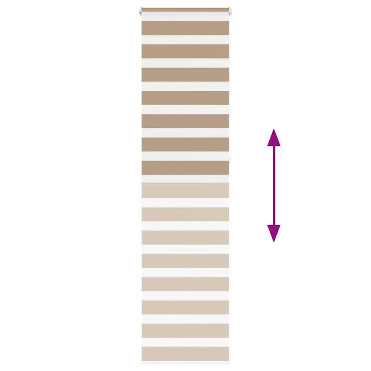 Elevate your room's style and functionality with this zebra blind, offering privacy and elegance. Durable and low maintenance: Made from 100% polyester, the zebra blind is built to last and resist wear and tear. They are also easy to clean, typically requiring light dusting or wiping with a damp cloth.Privacy and sun protection: The two-layer design features alternating transparent and opaque fabric panels. The light can be easily controlled using the chain hoist, allowing for seamless adjustment of the room's lighting from translucent to fully darkened.Two assembly ways: You can attach the zebra roller blind to the wall or window with screws or without drilling using clamping brackets, depending on your needs.Elegant design: Thanks to its sleek and modern pattern design, this zebra roller blind effortlessly complements a variety of room decor. You can use it in the living room, bedroom, office, and so on.Child safety and adjustability: The roller blind includes a chain connector that makes it easy to adjust the height according to your needs, and it also has a cord clip to add child safety. Warning:Keep cords out of the reach of young children. Cords may become wrapped around a child’s neck. Good to know:Before buying blinds, start by measuring your window glass. Just a friendly tip: the fabric is a bit narrower than the total width, including the brackets.To make sure your new blinds provide complete coverage, just add 4,1 cm to the width of the window glass when calculating what to order.