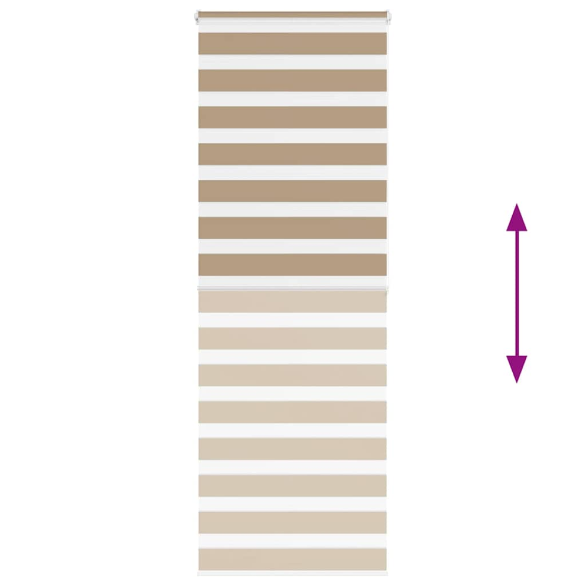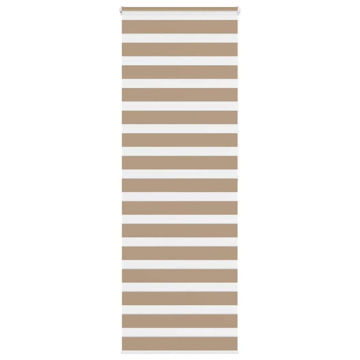 Elevate your room's style and functionality with this zebra blind, offering privacy and elegance. Durable and low maintenance: Made from 100% polyester, the zebra blind is built to last and resist wear and tear. They are also easy to clean, typically requiring light dusting or wiping with a damp cloth.Privacy and sun protection: The two-layer design features alternating transparent and opaque fabric panels. The light can be easily controlled using the chain hoist, allowing for seamless adjustment of the room's lighting from translucent to fully darkened.Two assembly ways: You can attach the zebra roller blind to the wall or window with screws or without drilling using clamping brackets, depending on your needs.Elegant design: Thanks to its sleek and modern pattern design, this zebra roller blind effortlessly complements a variety of room decor. You can use it in the living room, bedroom, office, and so on.Child safety and adjustability: The roller blind includes a chain connector that makes it easy to adjust the height according to your needs, and it also has a cord clip to add child safety. Warning:Keep cords out of the reach of young children. Cords may become wrapped around a child’s neck. Good to know:Before buying blinds, start by measuring your window glass. Just a friendly tip: the fabric is a bit narrower than the total width, including the brackets.To make sure your new blinds provide complete coverage, just add 4,1 cm to the width of the window glass when calculating what to order.