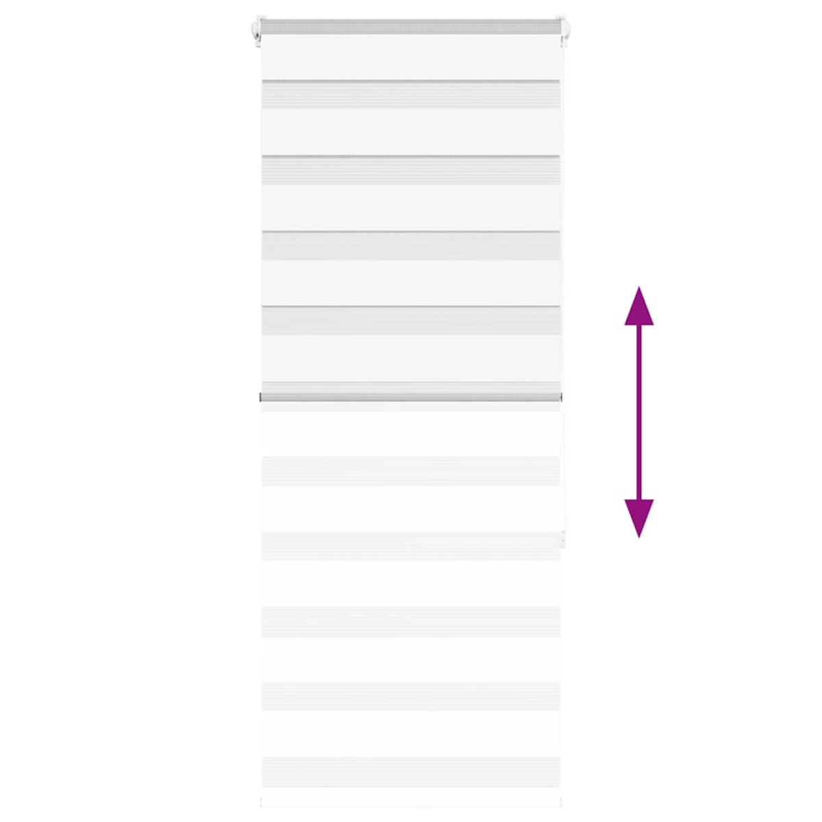 Elevate your room's style and functionality with this zebra roller blind, offering privacy and elegance. Durable and low maintenance: Made from 100% polyester, the zebra blind is built to last and resist wear and tear. They are also easy to clean, typically requiring light dusting or wiping with a damp cloth.Privacy and sun protection: The two-layer design features alternating transparent and opaque fabric panels. The light can be easily controlled using the chain hoist, allowing for seamless adjustment of the room's lighting from translucent to fully darkened.Two assembly ways: You can attach the zebra roller blind to the wall or window with screws or without drilling using clamping brackets, depending on your needs.Elegant design: Thanks to its sleek and modern pattern design, this zebra roller blind effortlessly complements a variety of room decor. You can use it in the living room, bedroom, office, and so on.Child safety and adjustability: The roller blind includes a chain connector that makes it easy to adjust the height according to your needs, and it also has a cord clip to add child safety. Warning:Keep cords out of the reach of young children. Cords may become wrapped around a child’s neck. Good to know:Before buying blinds, start by measuring your window glass. Just a friendly tip: the fabric is a bit narrower than the total width, including the brackets.To make sure your new blinds provide complete coverage, just add 4,1 cm to the width of the window glass when calculating what to order.