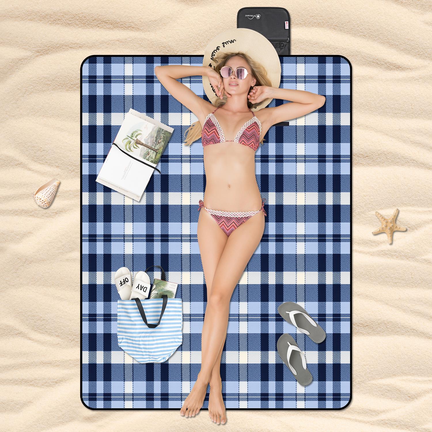 Vinsani 170 x 130cm Folding Picnic Blanket Waterproof & Sandproof Backing - Ideal for Camping & Outdoor Picnic - Rug Mat with Carry Handle