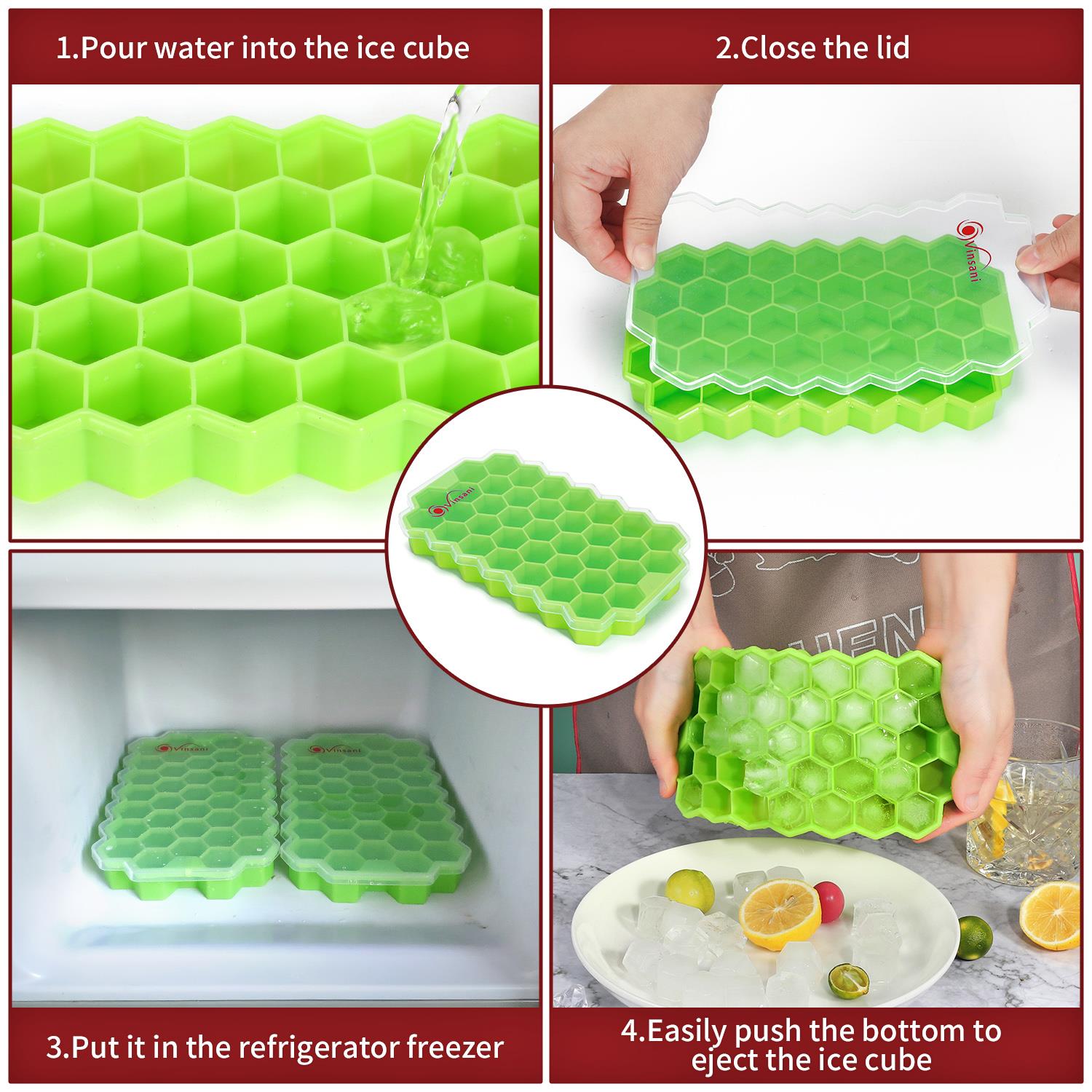FOOD-GRADE SAFETY MATERIAL: The silicone ice cube trays are made of silicone material which are LFGB Certified and BPA free. Each tray makes 37 ice cubes. Great for home use, parties, events etc.