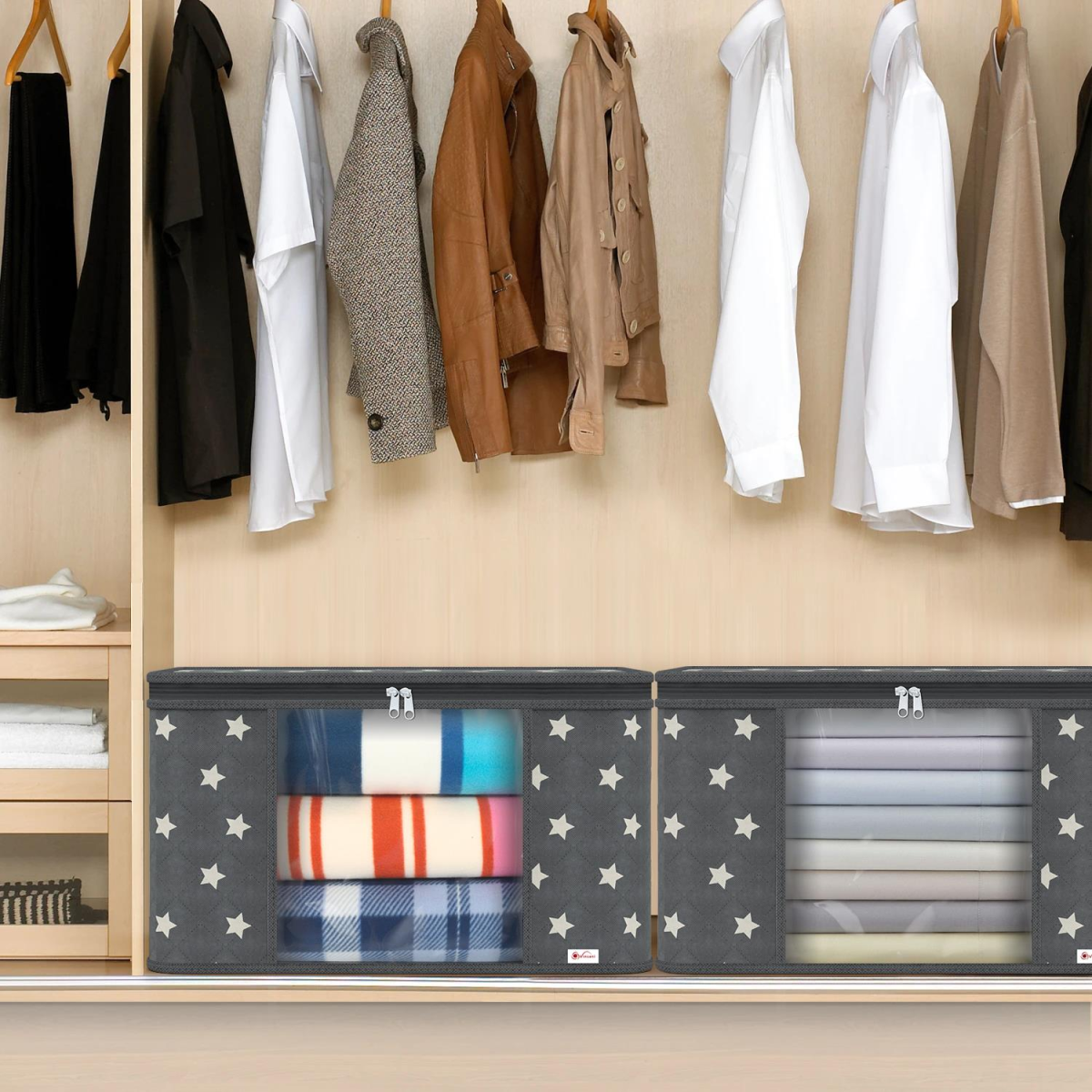 ENORMOUS CAPACITY: Comes in a set of 3 bags, each measuring 60 X 43 X 35 cm. Clothing, blankets, pillows, comforters, and other household goods can all be stored in this huge storage bag. These can also be used to hold shoes, toys, small electronics, stationery, towels, and groceries, among other things. These storage bag organizers will come in handy for your household.