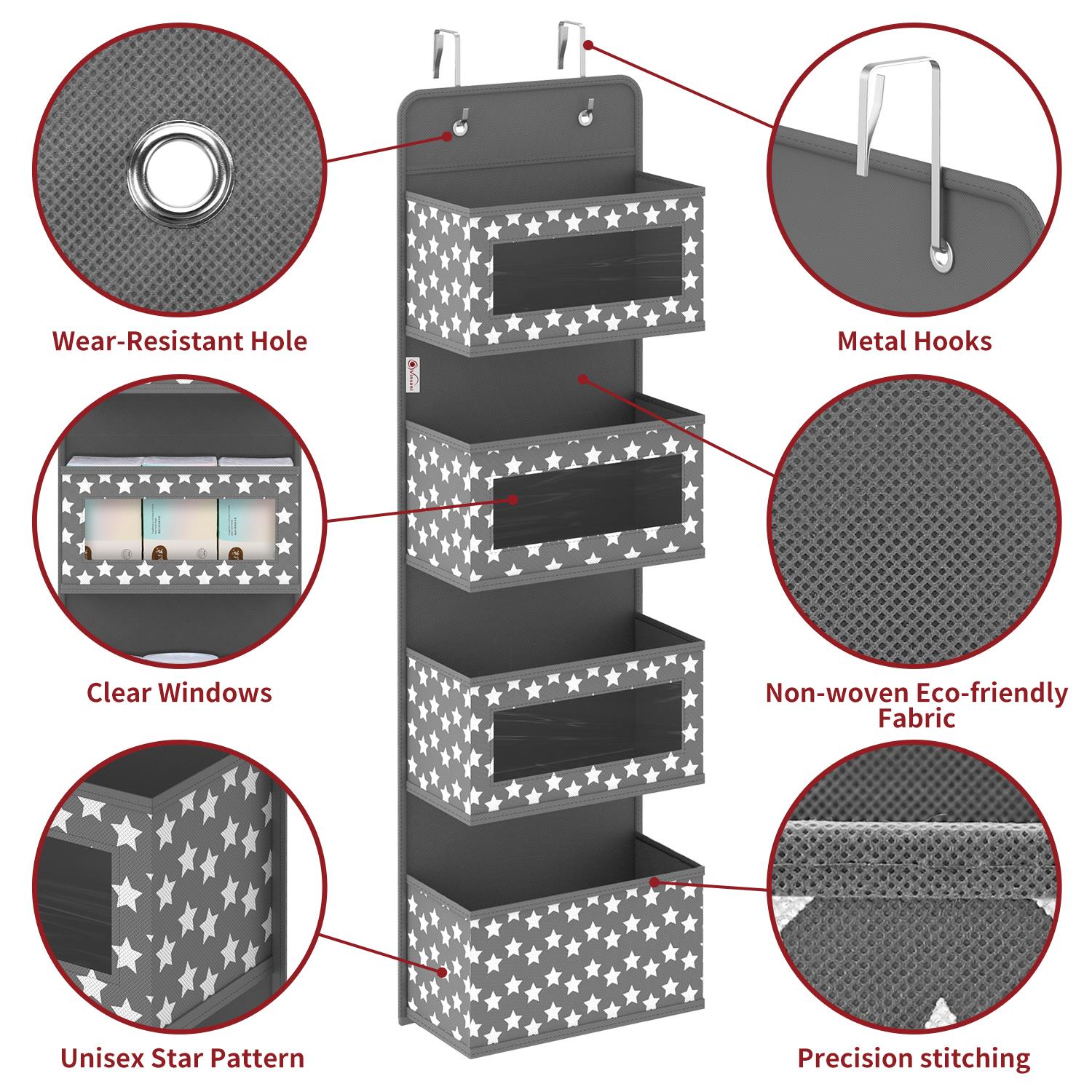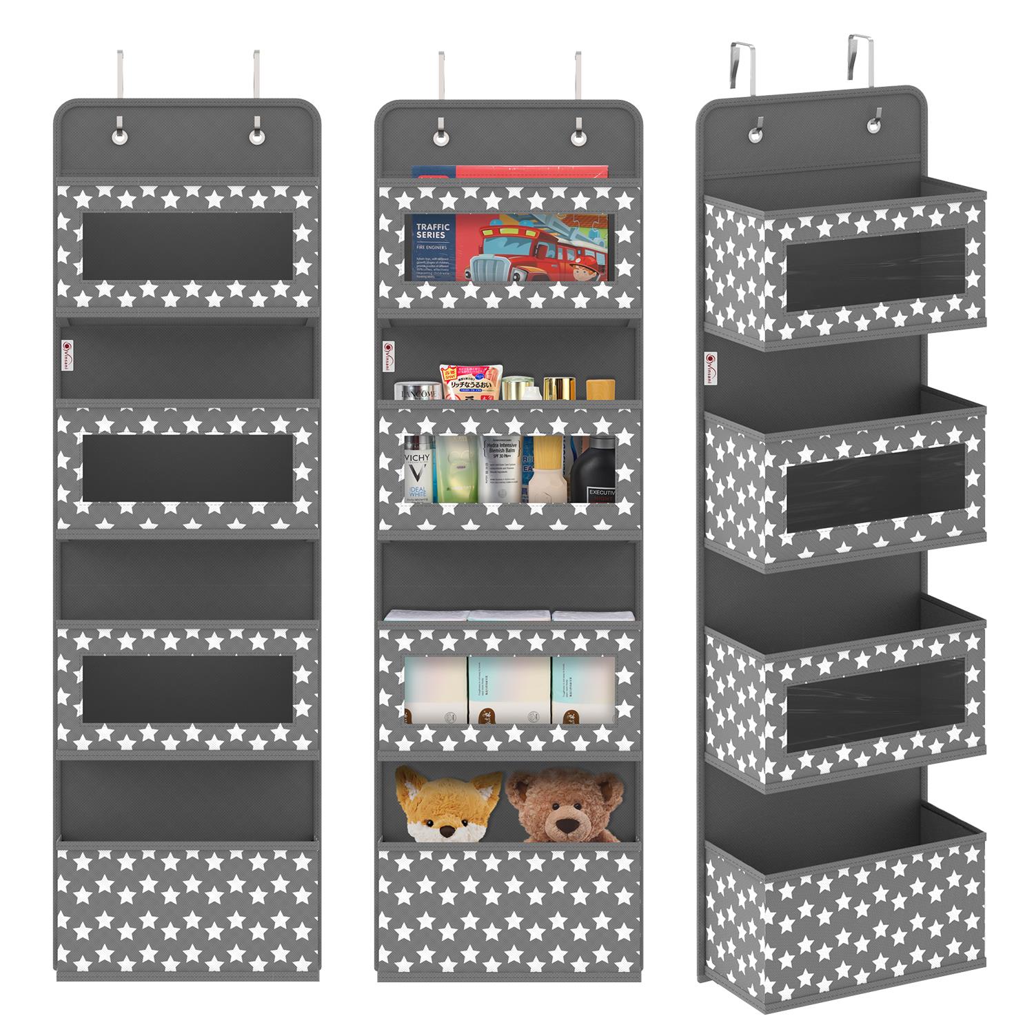 MULTI-USE: This hanging organiser is excellent for organising and storing a variety of goods such as cosmetics, toiletries, socks, diapers, baby wipes, underwear, scarves, hats, towels, toys, and electronic charging cords. When not in use, simply remove the hooks and boards and fold it flat to save you space!