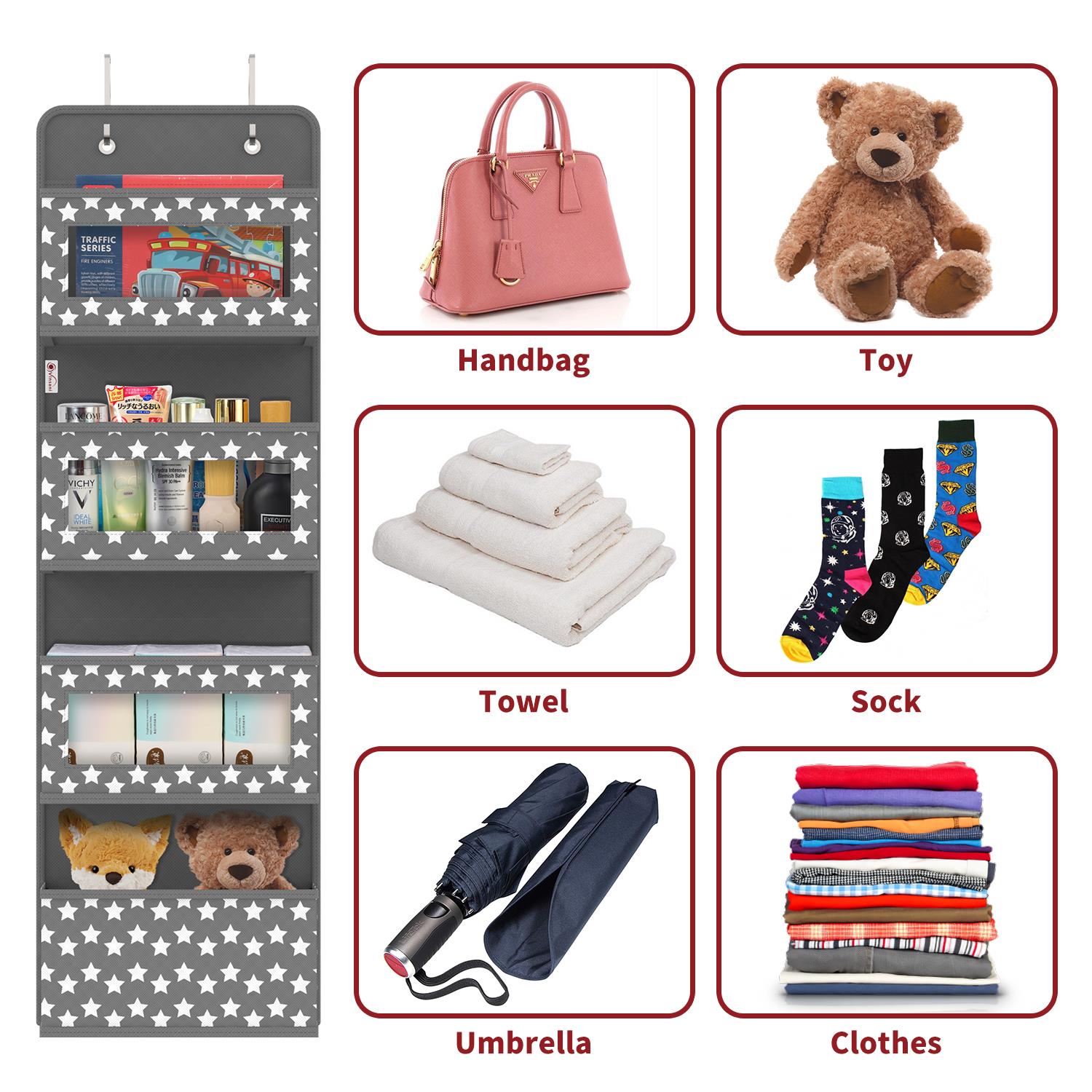EASY INSTALLATION: Simply stuff the cardboard plates into each pocket and hook it to the door to create vertical storage space. This set includes two metal hooks, side and base plates for the bottom of all pockets to give them a strong enough shape and to aid in the storage of items. Over the door hanging storage can be hung not only on doors and shelves, but also on the wall with nails or through the wear-resistant holes in the hooks.