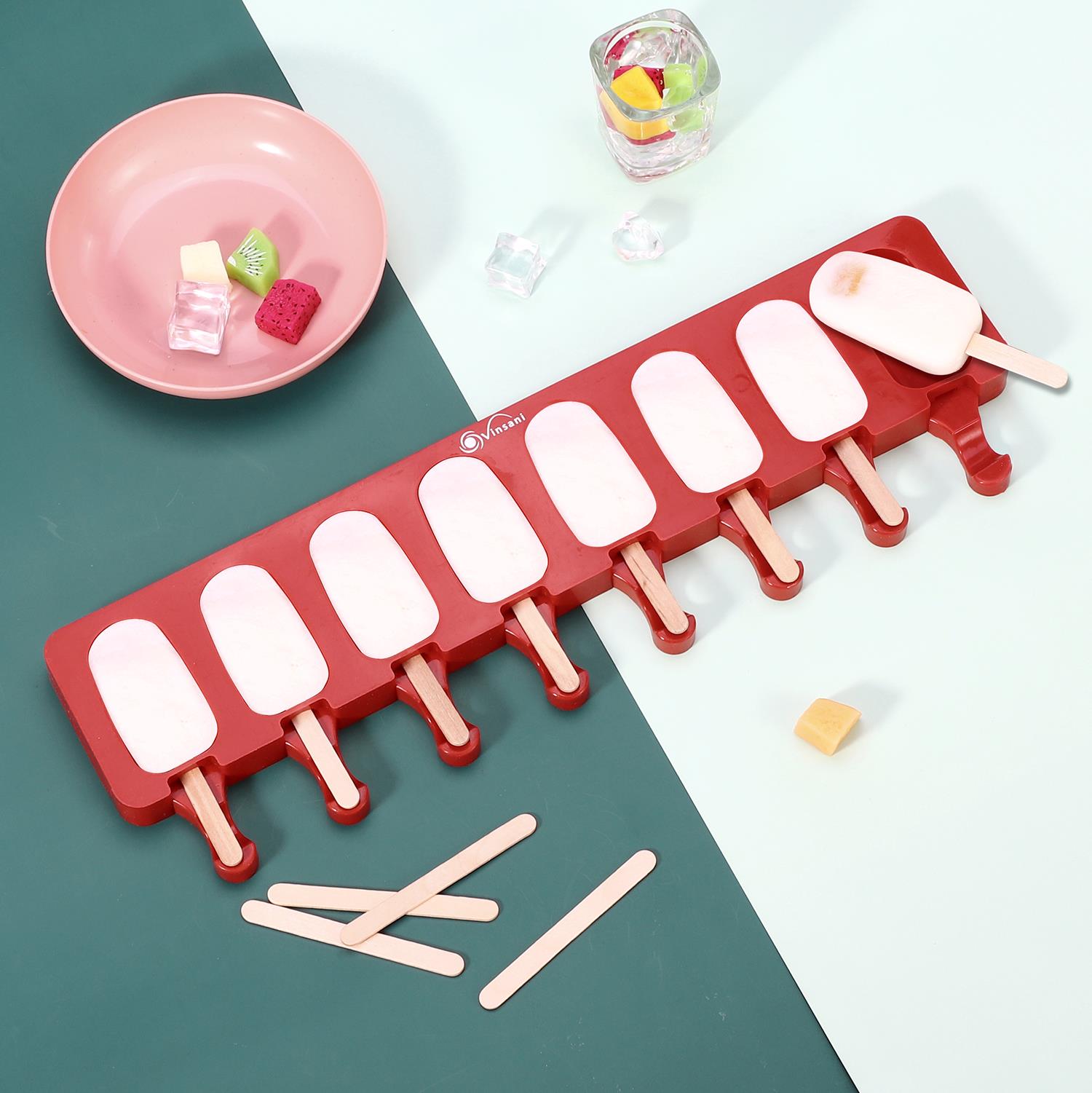 PACKAGE CONTENT: You will receive 1 x Ice lolly mould with 8 cavities + 50pcs wooden sticks. The ice mould measures 41.3 x 12.5 x 2.5 cm - perfect for any type of fridge.