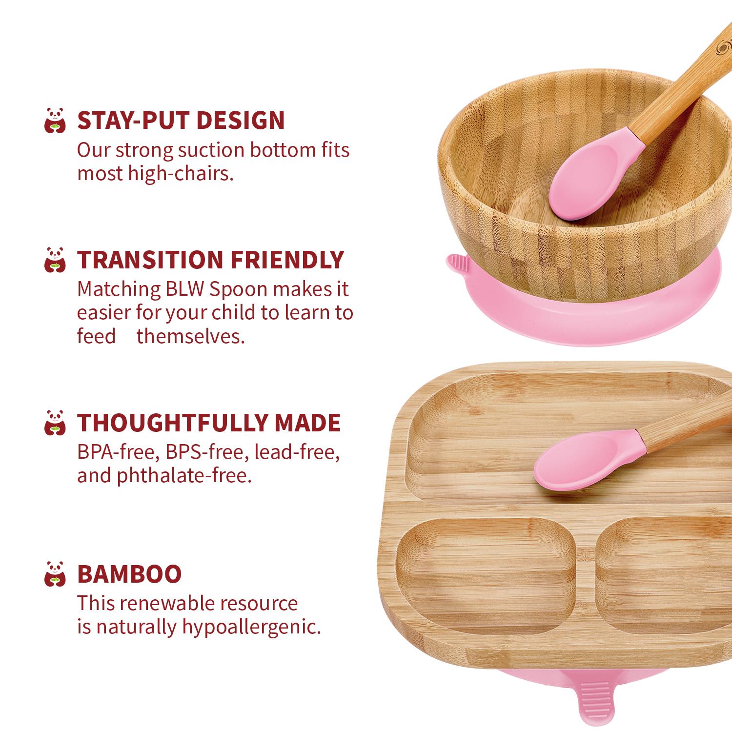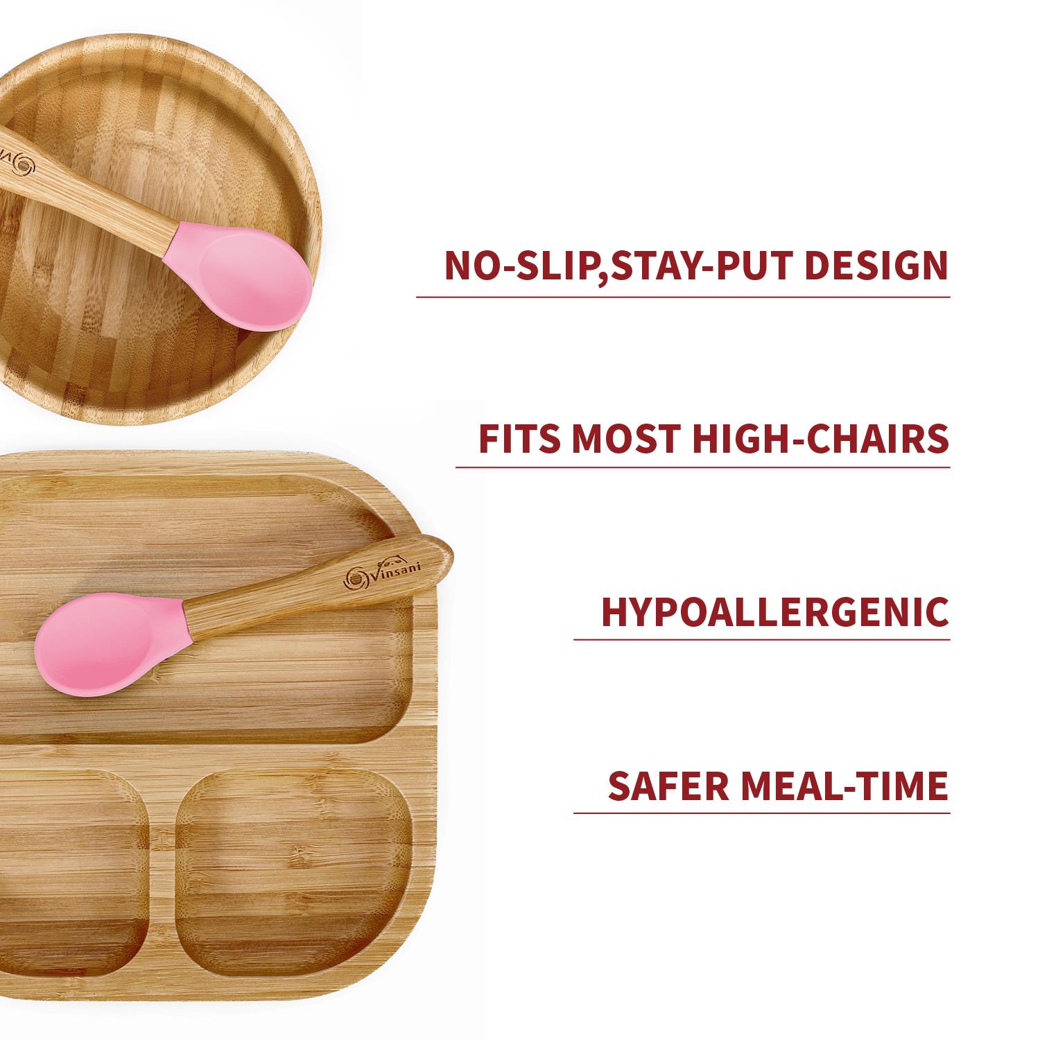 ALL-NATURAL BAMBOO: Made from all-natural hypoallergenic bamboo and food-grade silicone to protect your child from BPA, phthalates, and other toxins.