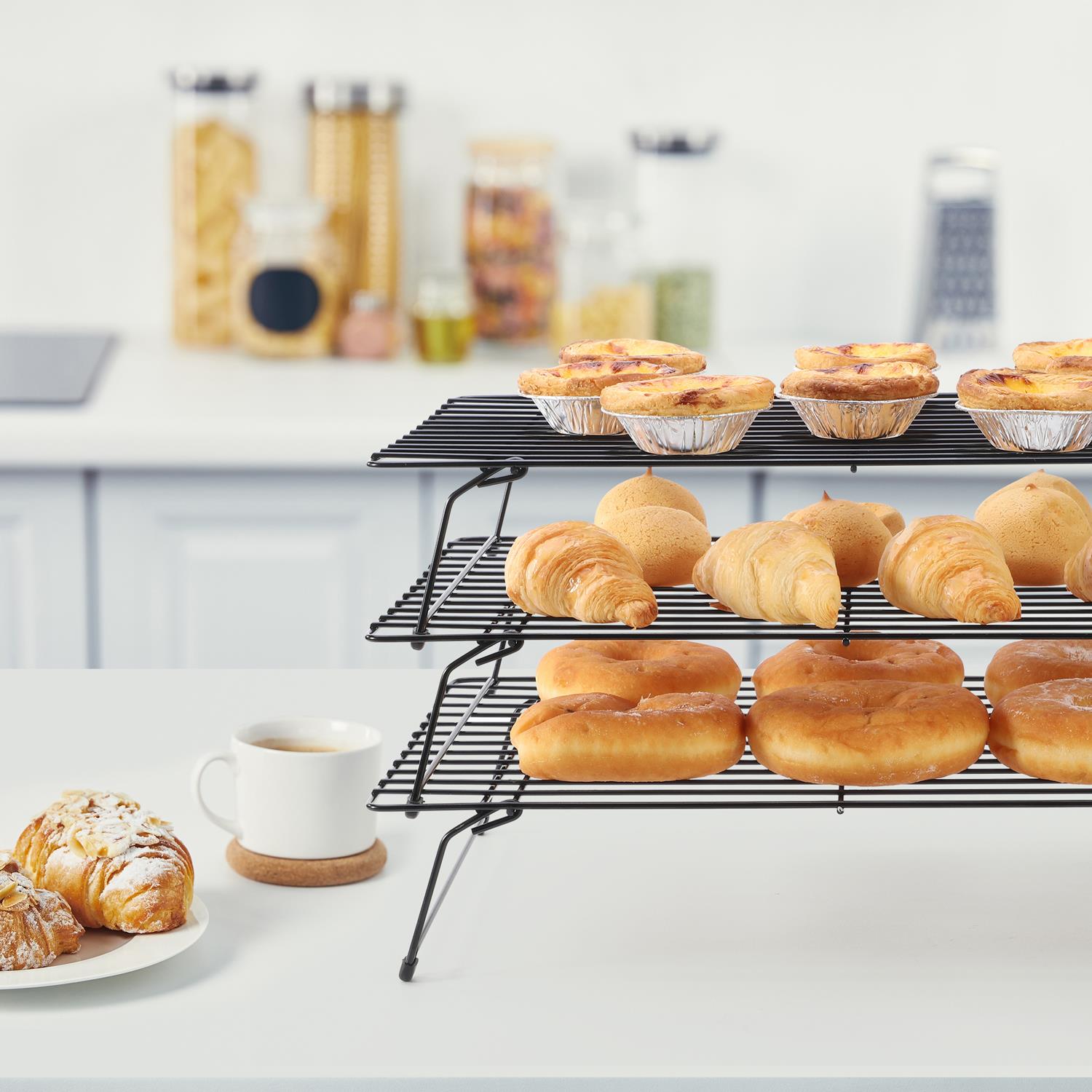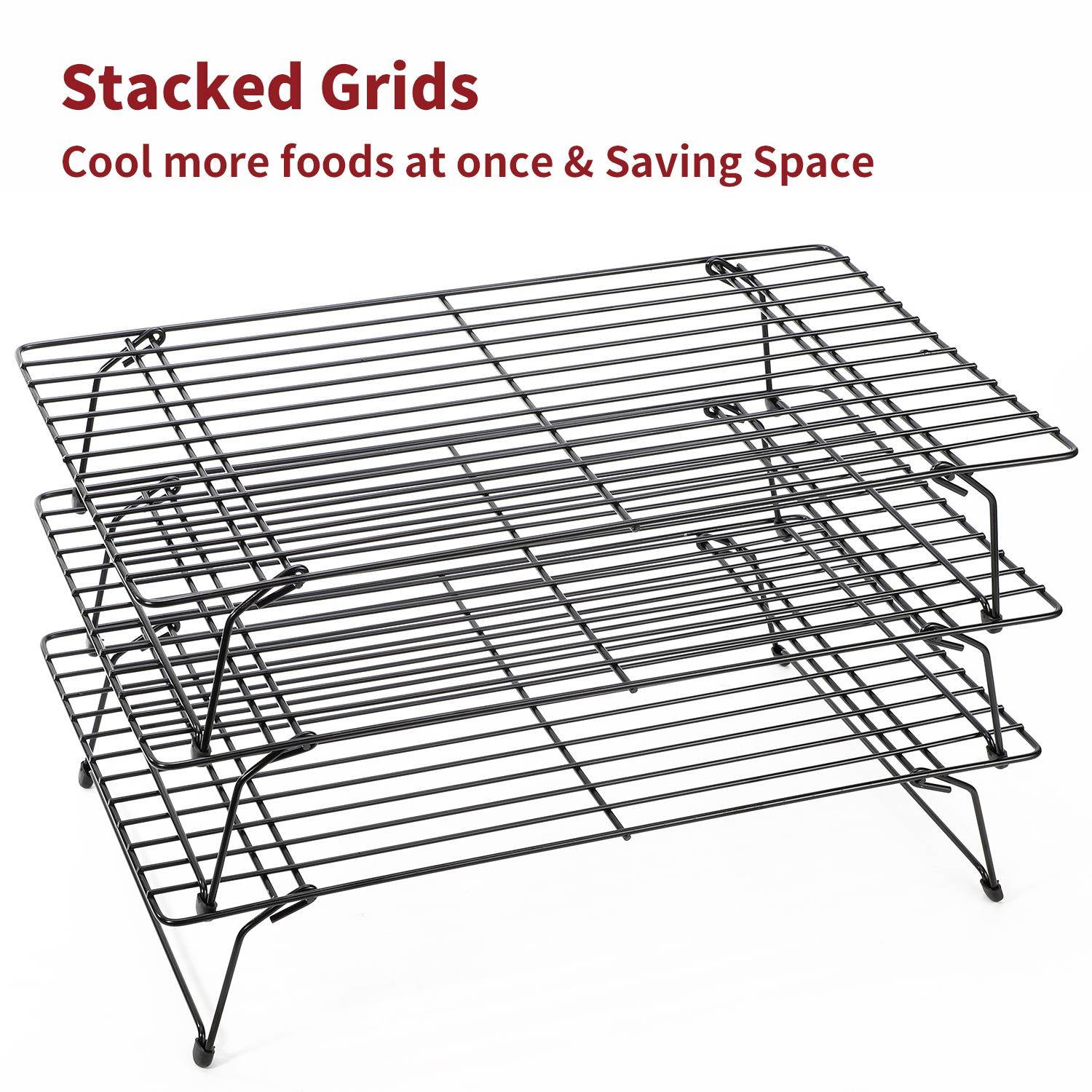 COLLAPSIBLE & SPACE SAVER: This cooling rack can be used all at once by overlaying one on top of the other or separately. Each one is convenient in that it can be folded, expanded, and stacked. It provides plenty of cooling space for cookies, doughnuts, cupcakes, and other items. When you are done baking, the rack collapses into a single compact piece for easy storage that does not take up much space!