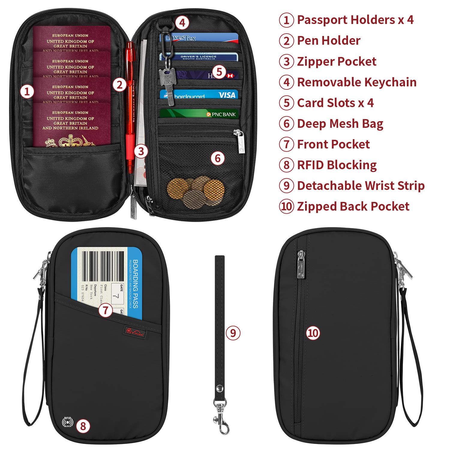 YOUR TRAVEL DOCUMENTS IN ONE PLACE - Get organised with our passport holder and never miss a beat. Our passport holder is the perfect travel companion, with lots of pockets to keep all your items safe and secure. From 4 passport holders, 5 card slots, pen slot and a secure zippered pocket for important things, you'll have easy access to all your most essential belongings.