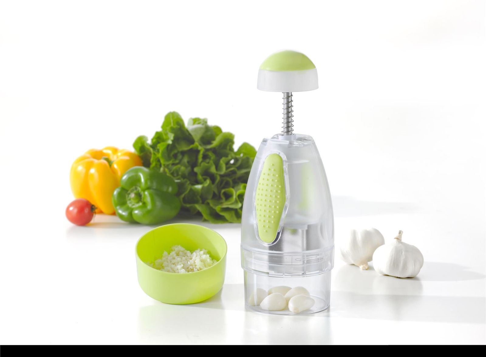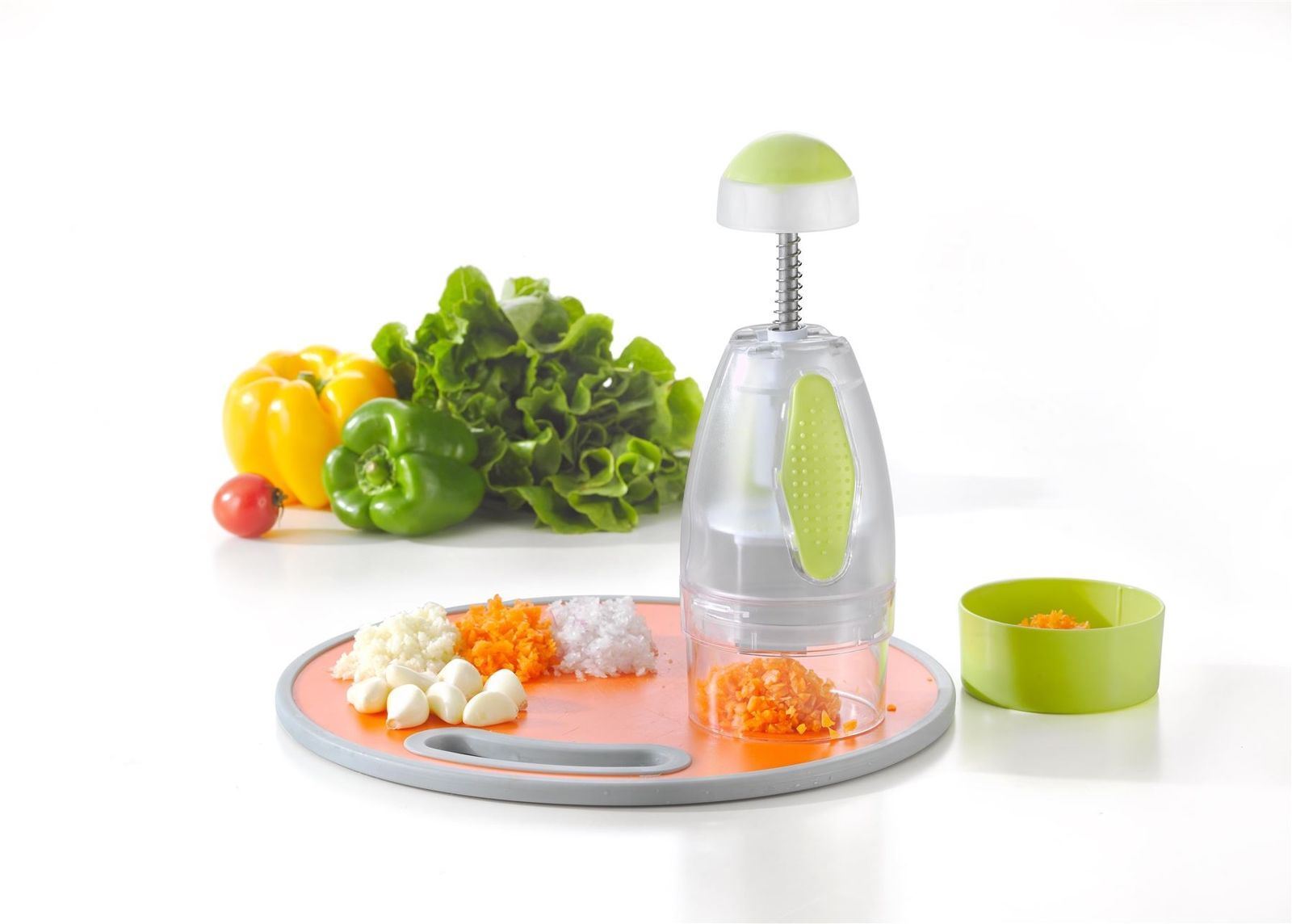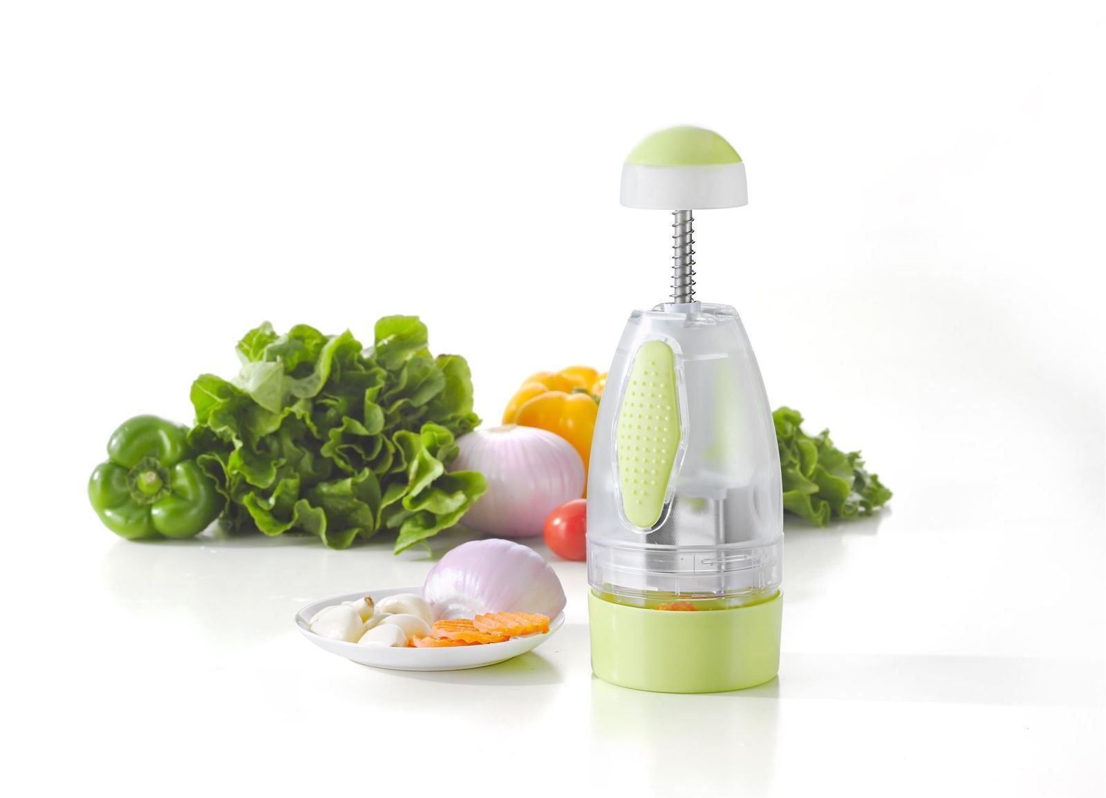 QUICK USE: Versatile and easy to use food chopper with soft press top for comfortable operation. Blades inside automatically twist with each press and chop vegetables.