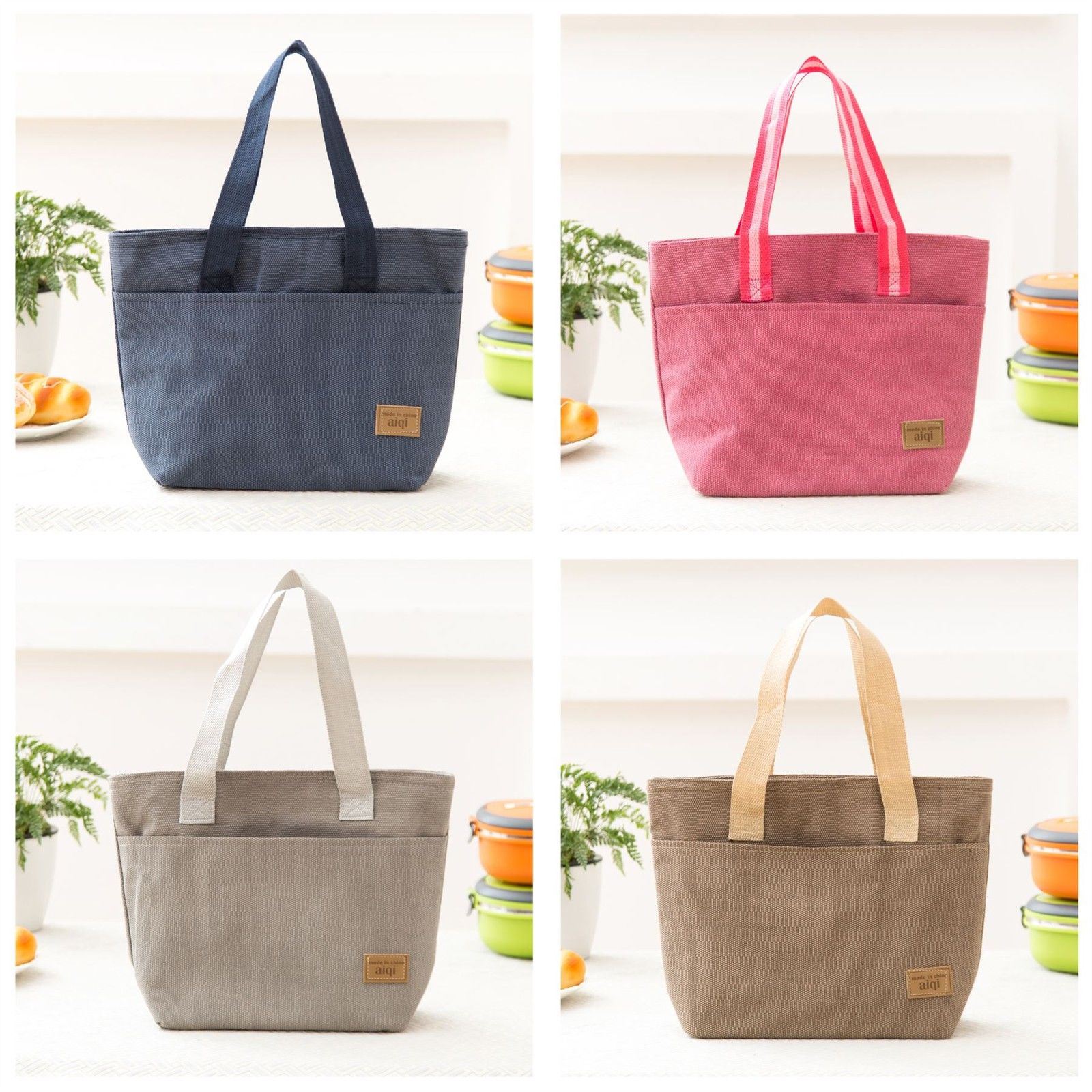 Aluminium foil inside that act as a thermal insulator to keep food warm or cold Stylish design, simple and elegant Closure: zipper Material: canvas and aluminium foil Weight: 140g Dimensions: L22 x W9 x H23.5 cm Handle height: 17.5cm
