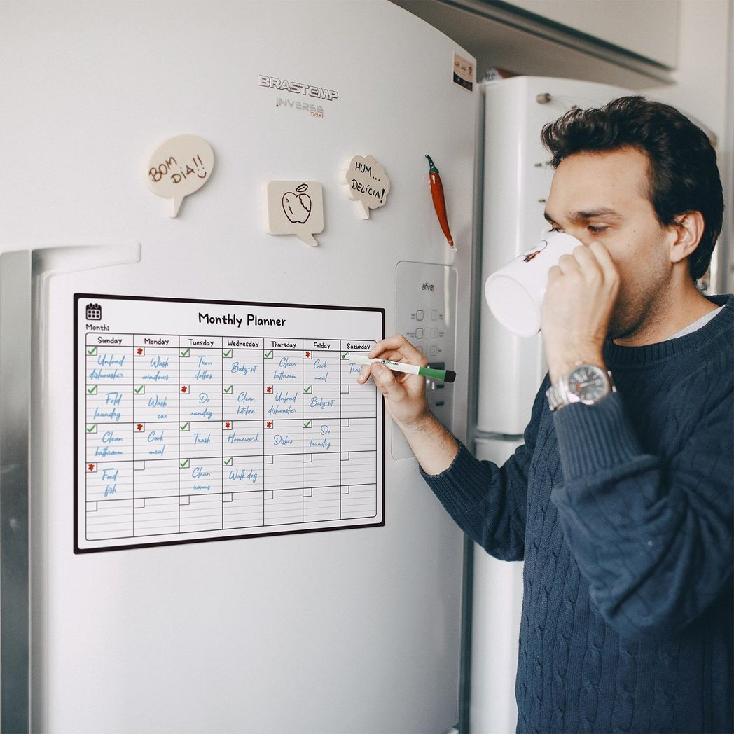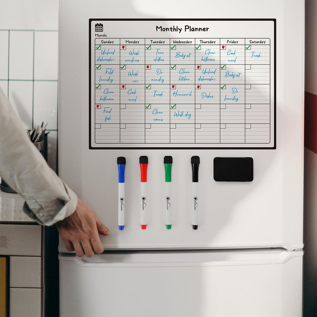VERSATILE DESIGN: A multifunctional magnetic whiteboard designed to be a monthly planner and organiser. The whiteboard is suitable for use in a variety of environments from home to office. Can be displayed on any magnetically receptive surface, turning it into a place to store useful notes and reminders.