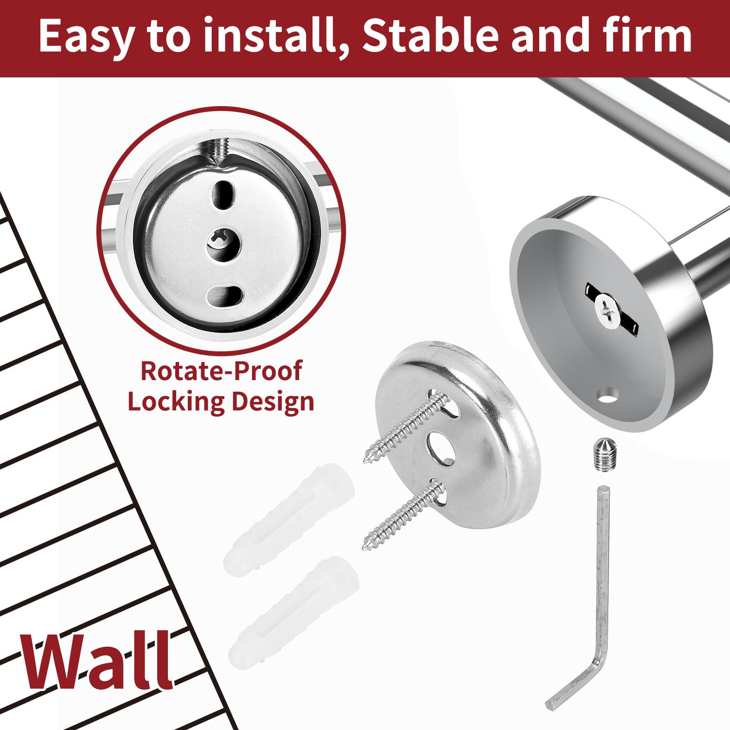 TOILET PAPER HOLDER SOLUTION: Our toilet holder is a perfect balance of minimalism and simplicity. It can be mounted vertically or horizontally to save space and it can hold any size of paper roll. Non-intrusive, fits in small spaces, and complements any home décor. PREMIUM MATERIAL: It is constructed of premium stainless steel that has been finished to prevent rusting and corrosion, providing durability and reliability. It is also waterproof and simple to clean. ROTATE-PROOF: Our stainless-steel toilet paper holder features a sleek rotate-proof locking design with screw tightening on the bracket to prevent rotation and maintain it upright and affixed for a long time. There would be no tilting or falling off! EASY TO INSTALL: Install on the walls or beneath the cabinet either vertically or horizontally. Mounting screws, anchors, an allen key, and a bracket are included in the package. To firmly place the holder, use the provided screws. VERSATILE: Our toilet paper holder is designed to the highest specifications for strength and durability in moist conditions, making it excellent for bathrooms, kitchens, hotels, bedrooms, and closets.