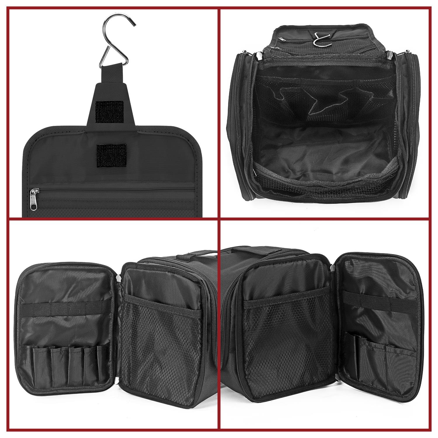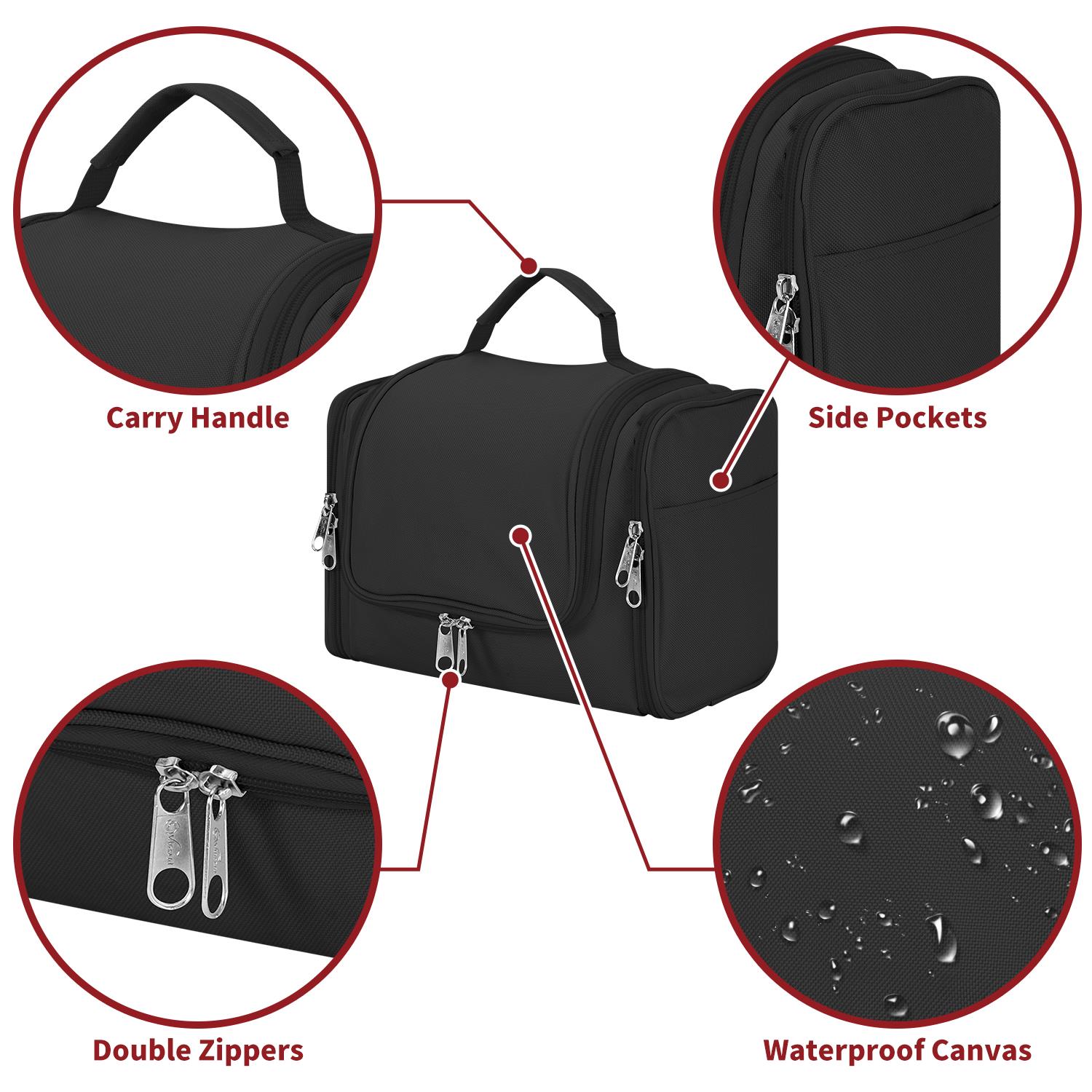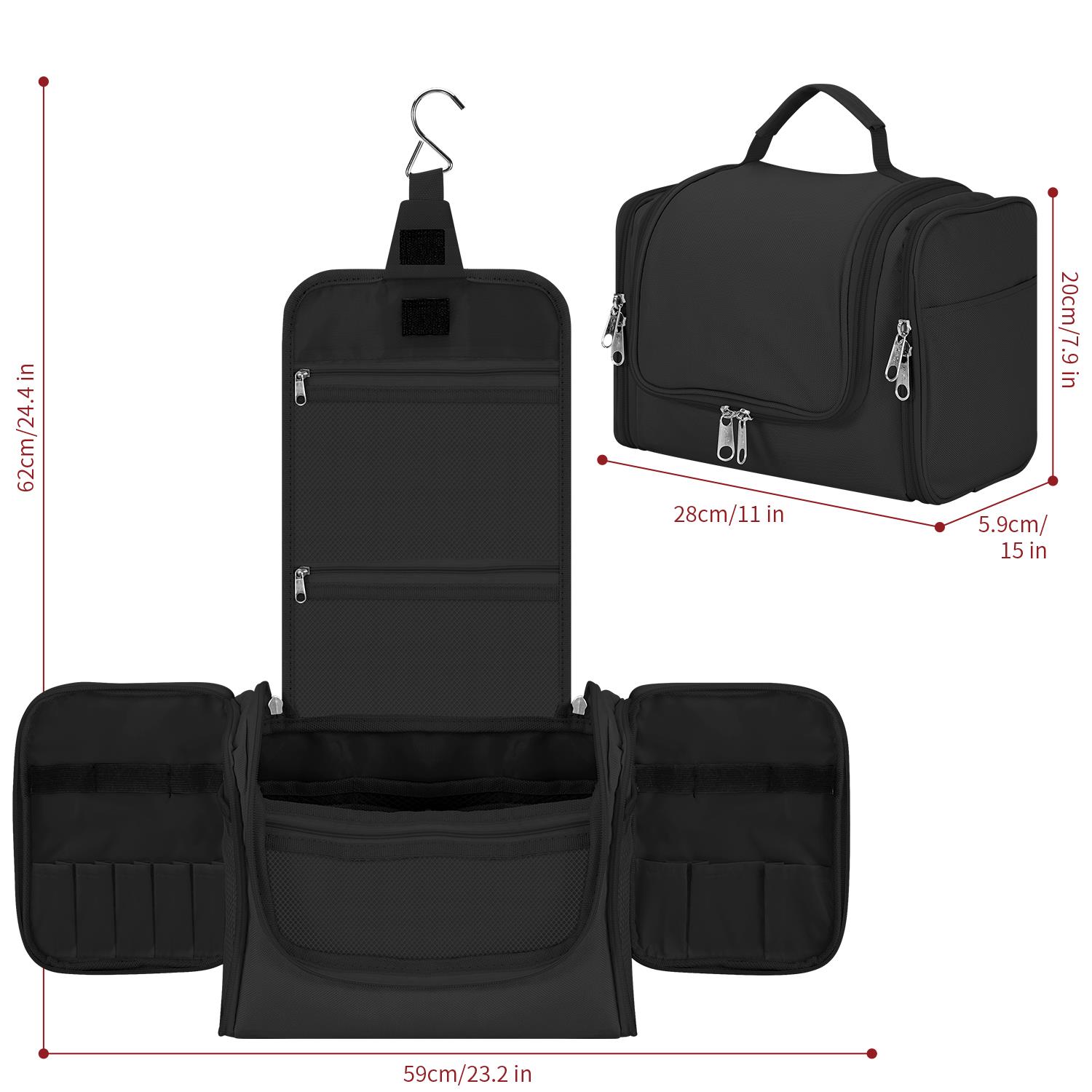 CONVENIENT DESIGN: With a reinforced double-stitched handle, two zippers, and a hook that works fantastically on your bathroom or other places, this toiletry bag offers the most practical design and plenty of space for your essentials. All of your essential toiletries can be neatly stored in multiple compartments with functional mesh pockets and elastic loops without taking up a lot of room in your luggage.