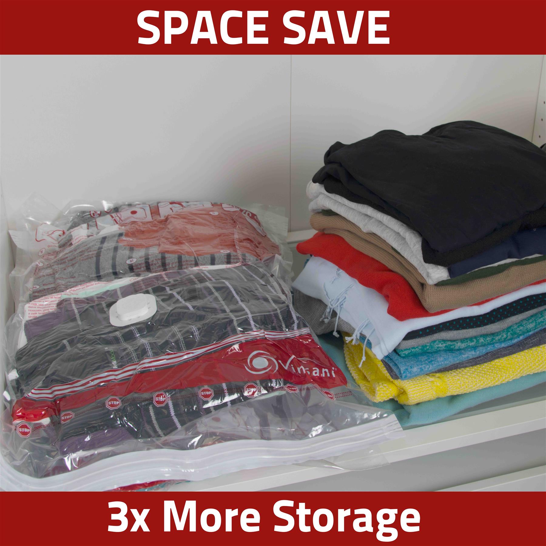 INCREASE YOUR STORAGE SPACE - Without having to clean out your closet. The Magic Saver Bags are an ideal solution for adding more storage space to your wardrobes, closets, garages, basements, lofts, and suitcases.