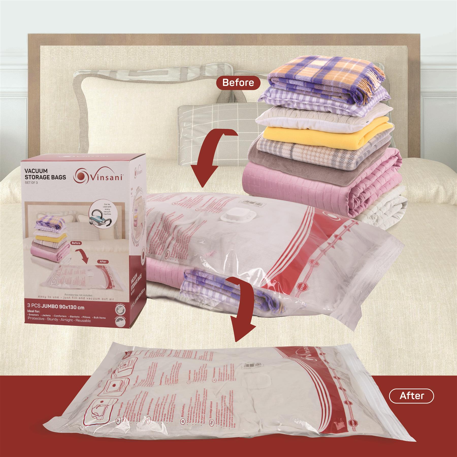 LARGE SIZE BAGS - Store away your sweaters, jackets, comforts, blankets, pillows, bulk items and much more. Organise your wardrobe.